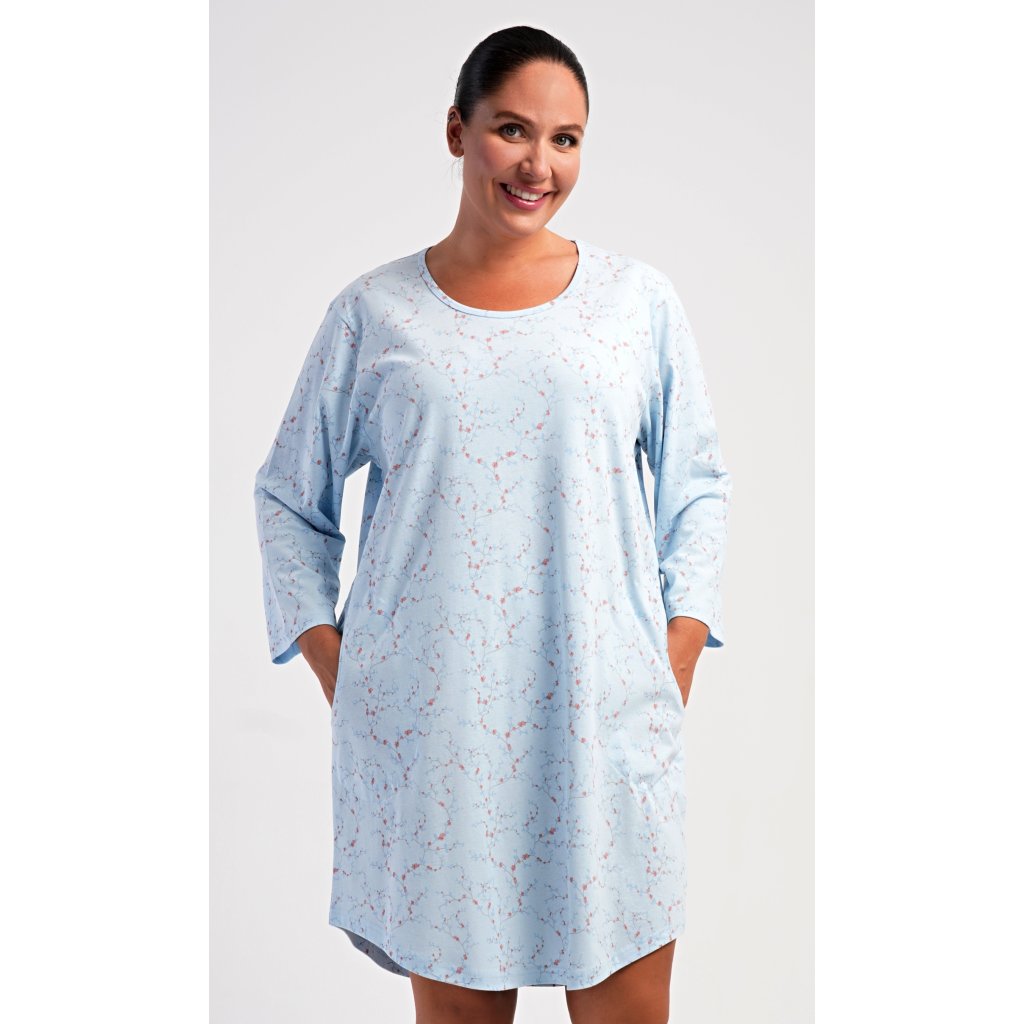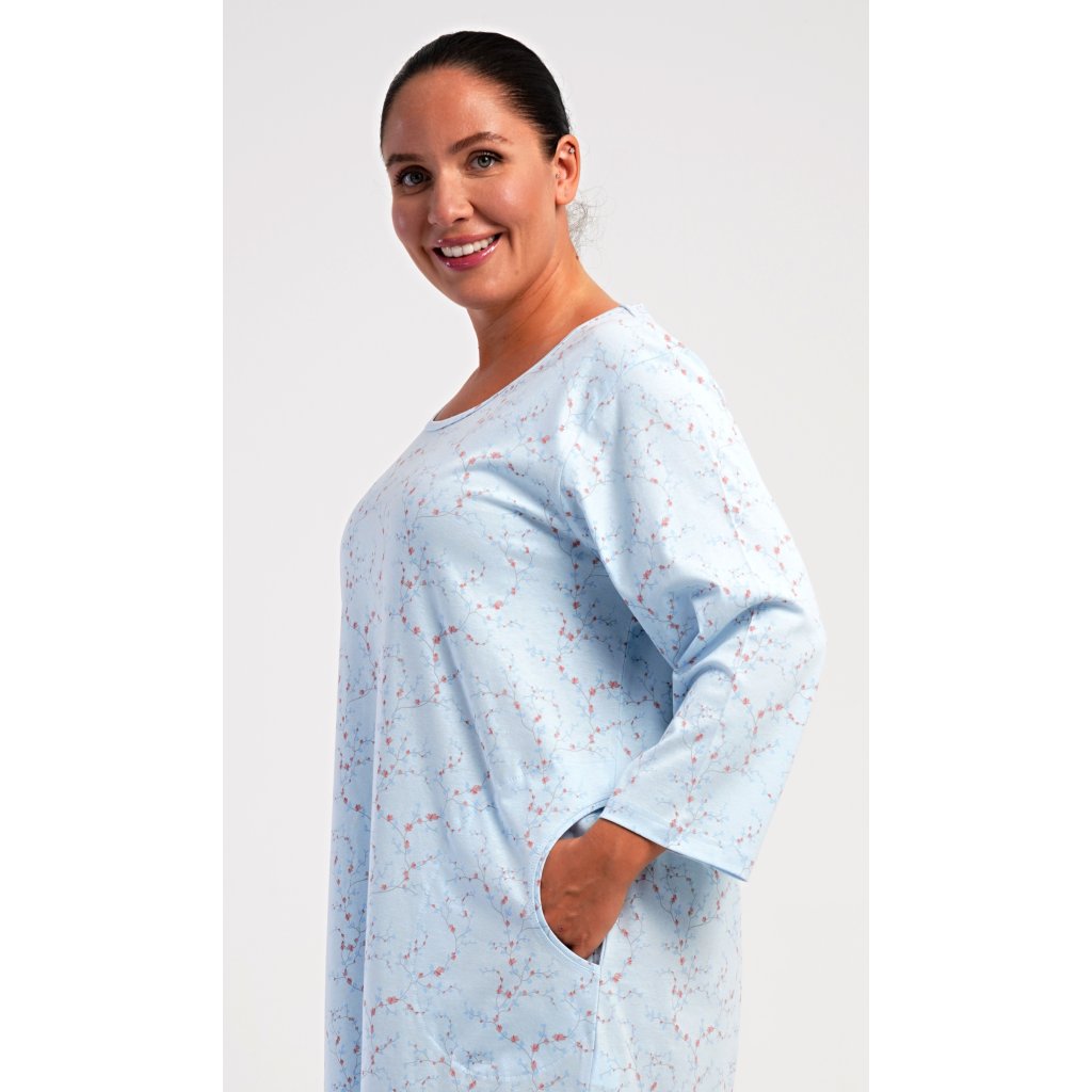 Dámské bavlněné domácí šaty s tříčtvrtečním rukávem Lauren. Domácí bavlněné šaty s kulatým výstřihem a praktickými kapsami jsou potištěny drobnými květy. Použitý bavlněný materiál je příjemný a poddajný na dotek.