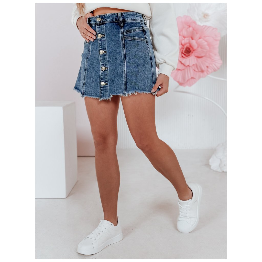 Tyto džínové culottes jsou nezbytností pro milovnice pohodlí a stylu. Vysoký pas zdůrazňuje pas a opticky prodlužuje nohy, zatímco knoflíky a roztřepený lem dodávají elegantní nádech. Klasické kapsy vpředu i vzadu je činí perfektními. Vzdušný denim je ideální pro jarní dny. Skvěle se hodí k teniskám a oversized mikinám.