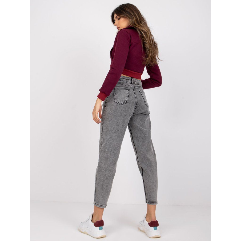 Tmavě šedé MOM džíny jsou všestranným kouskem. Vyrobeno z kombinace 98% bavlny a 2% elastanu, příjemně se nosí a má poměrně volný střih - ideální pro ženy se štíhlejší postavou. Praní v pračce na 30°C zajišťuje správnou péči. Kalhoty mají zaoblený tvar, bez vzoru. Styl těchto kalhot umožňuje pohodlné nošení v práci, každý den i do školy.