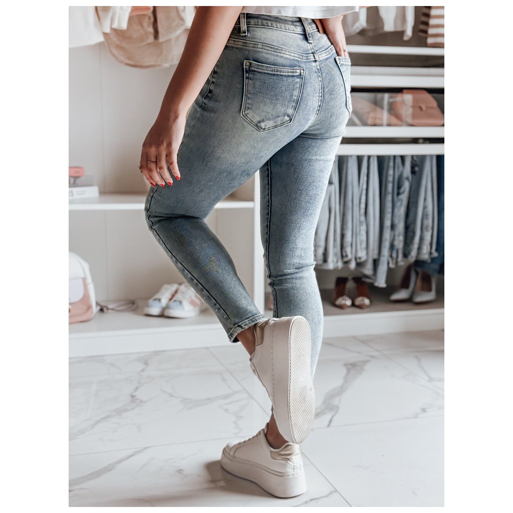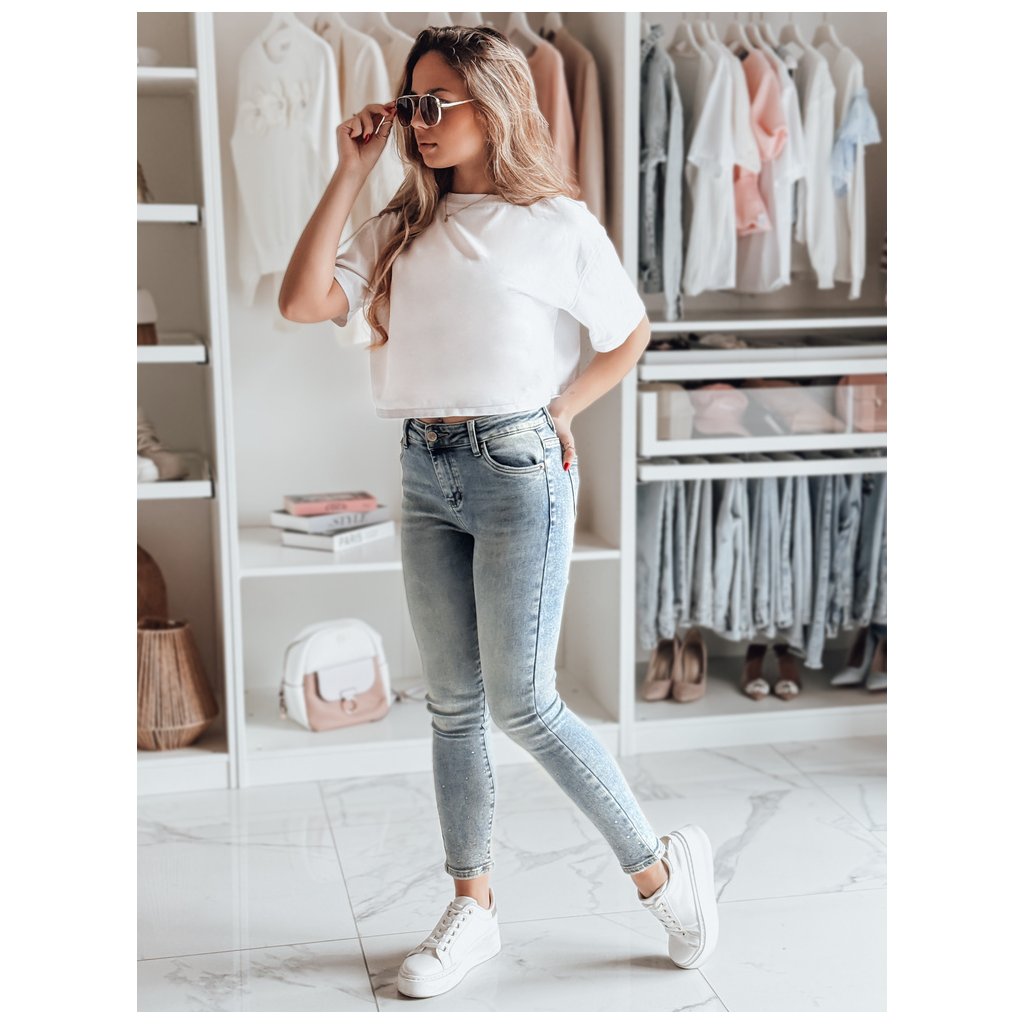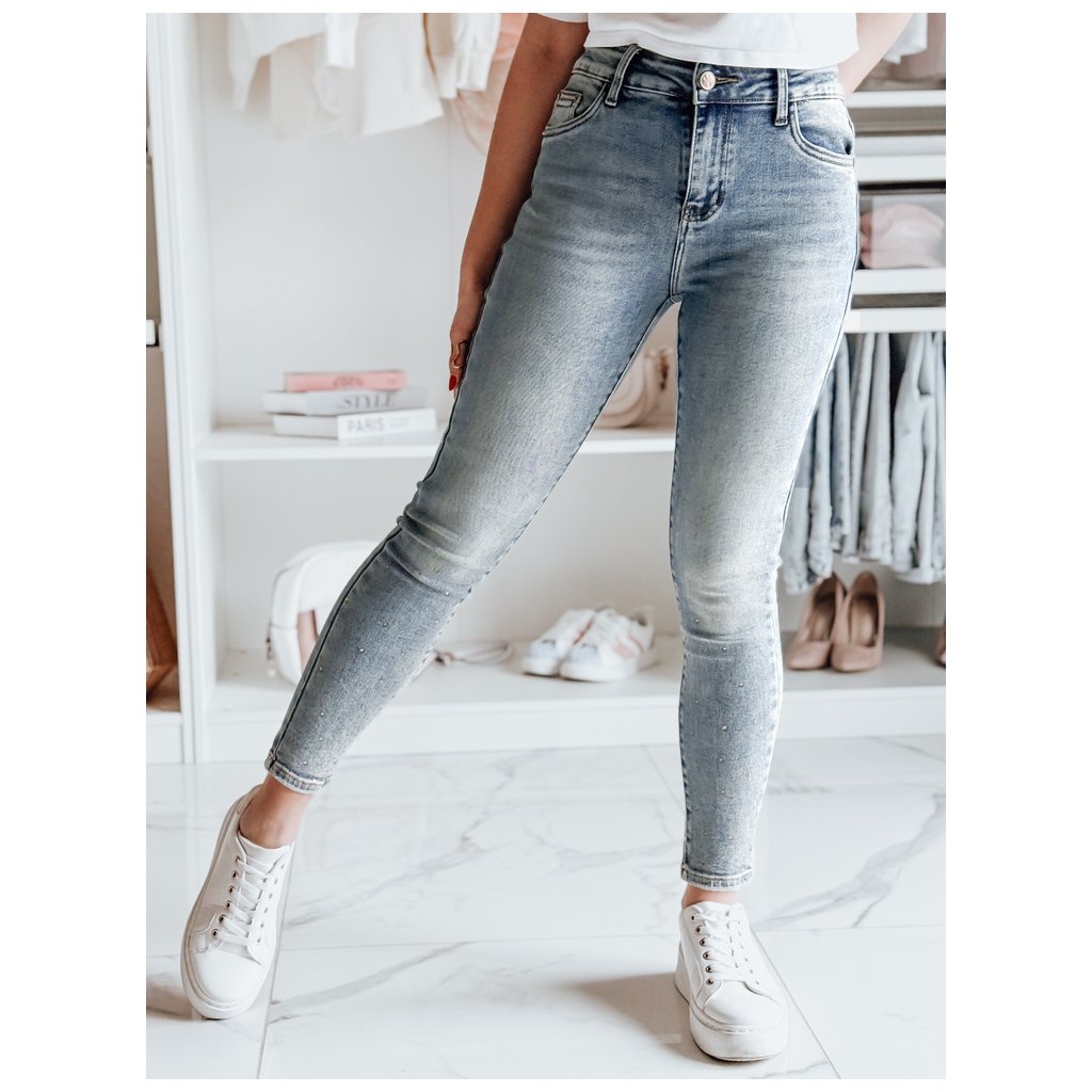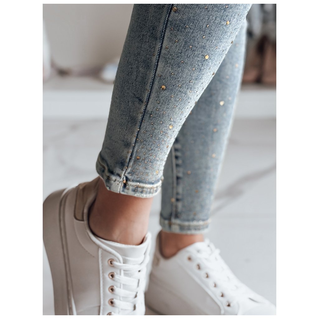 Tyto dámské úzké džíny z elastického denimu krásně tvarují postavu. Třpytivé zdobení kamínky dodávají džínám jedinečný nádech. Ideální pro jarní styling s tričkem, mikinou nebo sakem. Pohodlný střih s vysokým pasem.