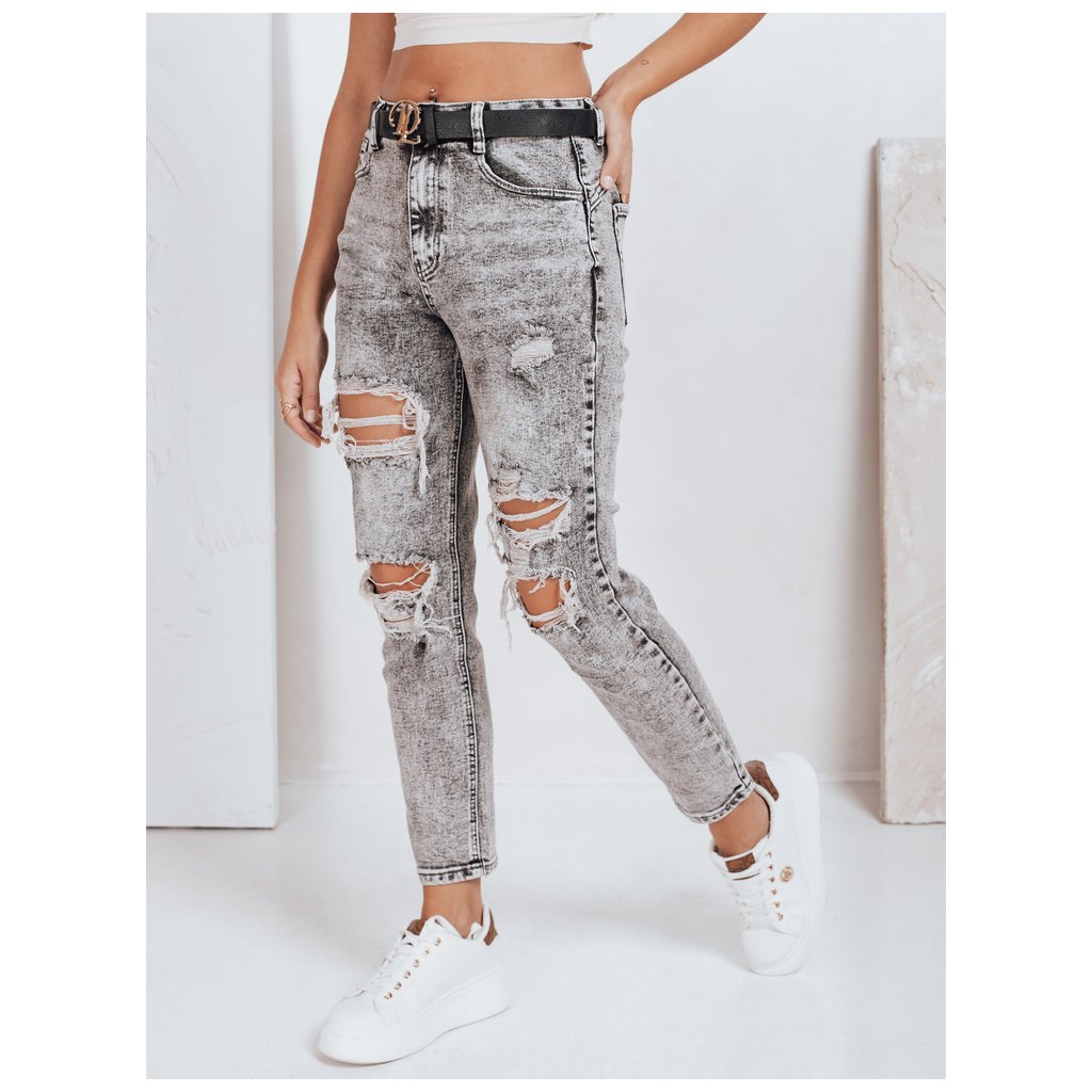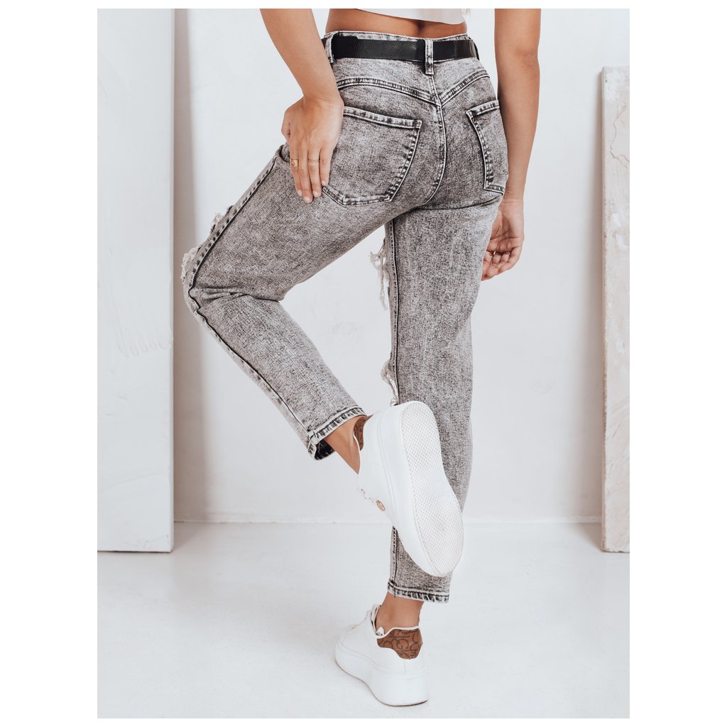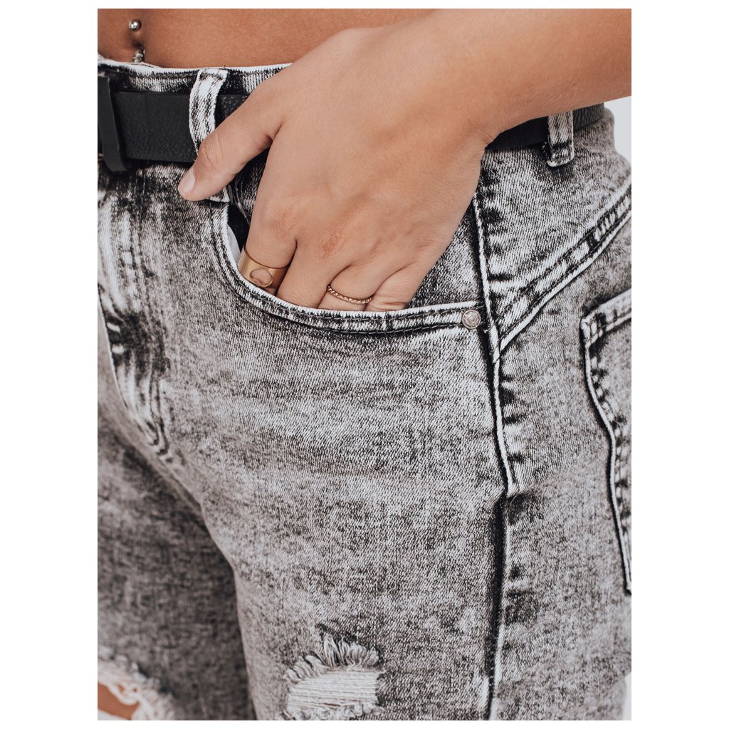 Tento střih s efektem opotřebení a push-up technologií kombinuje pohodlí s osobitým charakterem. Pružná tkanina decentně zdůrazňuje nohy a hýždě a umožňuje neomezený pohyb při každodenních aktivitách. Vysoký pas zeštíhluje postavu a přiložený pásek umožňuje rychlé nastavení pasu a dotvoření celkového vzhledu.
