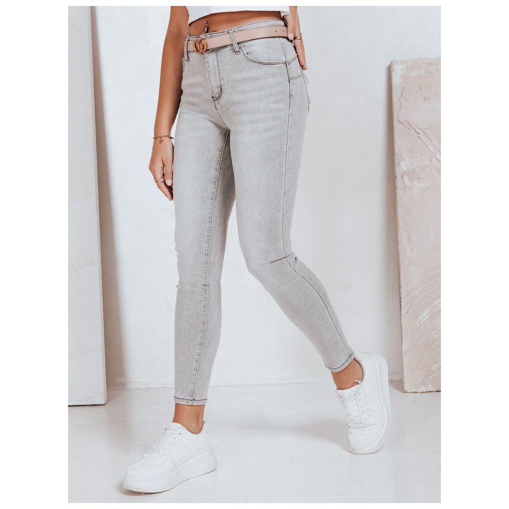 Dámské džíny s vysokým pasem, šedé UY2804Tyto dámské push-up skinny džíny kombinují přiléhavý střih s tvarujícím efektem, který lichotí postavě. Vysoký pas krásně zdůrazňuje pas a zajišťuje celodenní pohodlí. Šedý denim dělá z těchto džín všestranný základní kousek šatníku, vhodný jak pro ležérní, tak i pro elegantnější outfity.