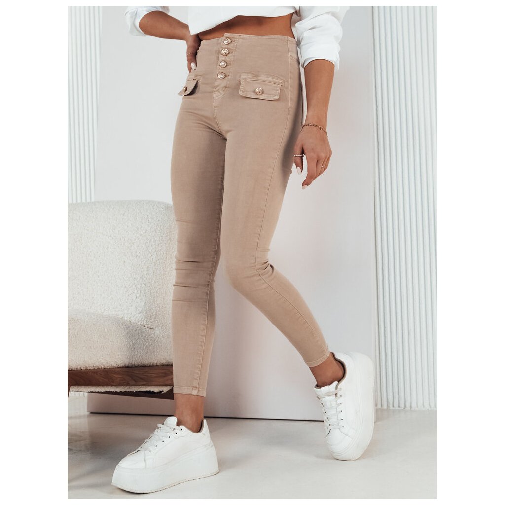 Dámské džíny s vysokým pásem SKULL Barva světle béžová DSTREET UY1723