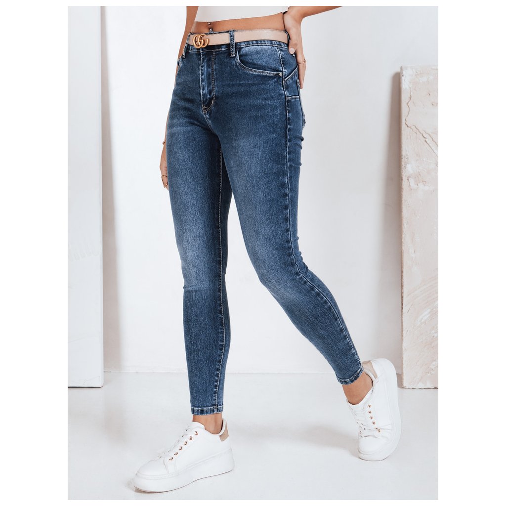 Úzké džíny jsou nadčasovým kouskem dámského šatníku, ideálním pro celoroční nošení. Vyrobeny z měkké, mírně pružné látky, přizpůsobí se postavě a poskytují pohodlí při každodenním nošení. Vysoký pas zajišťuje pohodlné nošení a pětikapsový design vytváří klasický vzhled. Modrý denim se hodí k mnoha outfitům - ať už k teniskám, kotníkovým botám nebo saku.