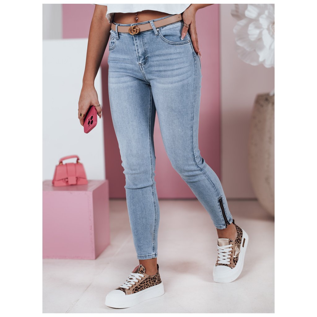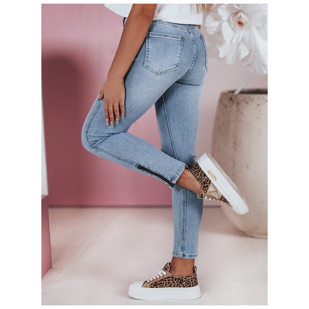 Dámské úzké džíny s mírně vyšším pasem. Úzké nohavice zeštíhlují a boční ozdoby na zip dodávají moderní nádech a styl. Perfektně se hodí k ležérním outfitům a zdůrazňují moderní vzhled.