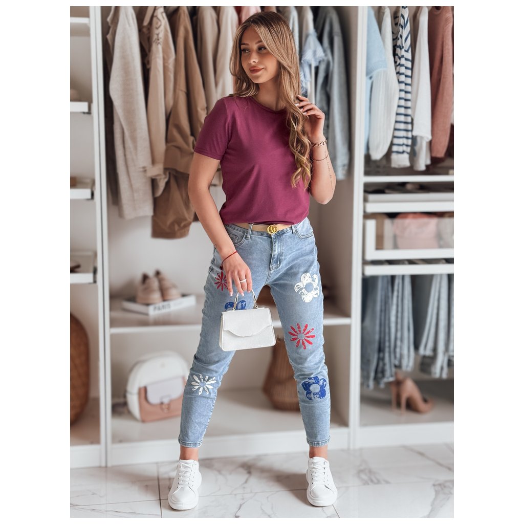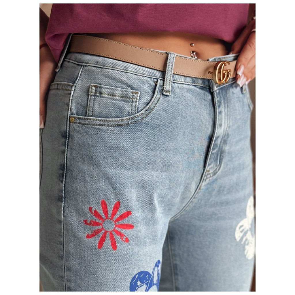 Dámské džínové kalhoty slim fit s květinovým potiskem od ARTJEANS