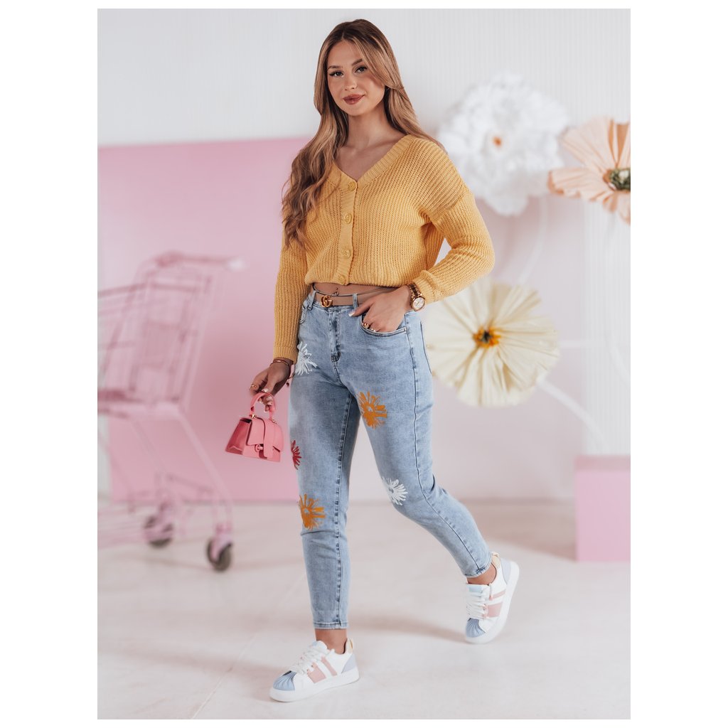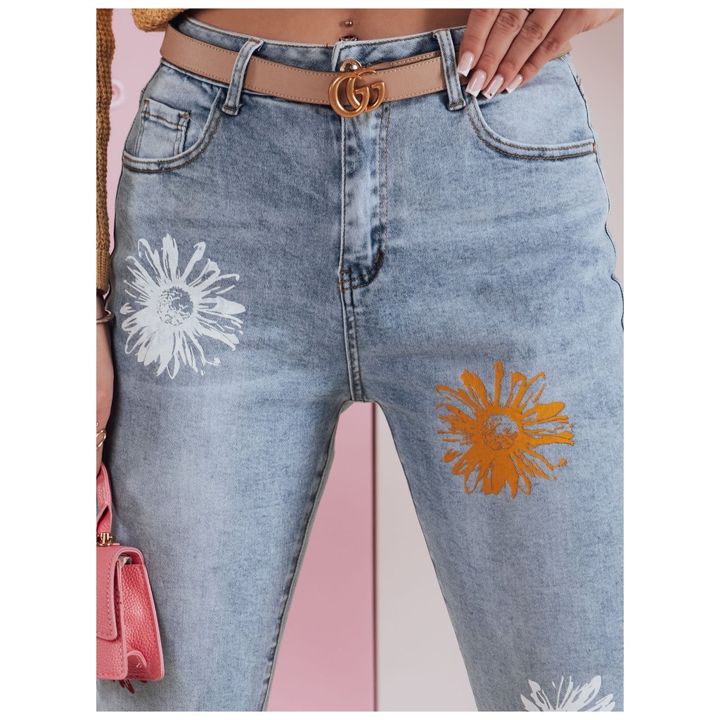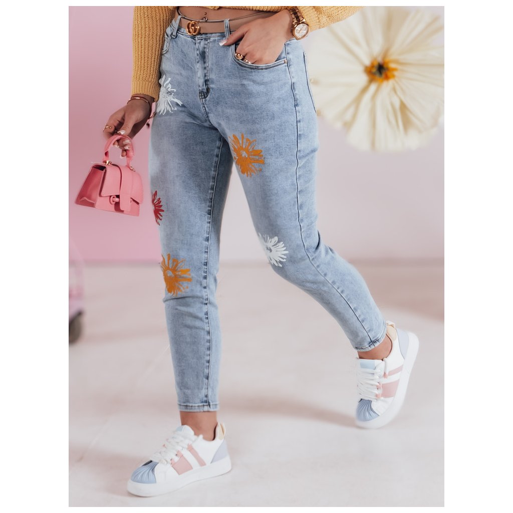 Dámské džínové kalhoty slim fit s květinovým vzorem FLORENSSO