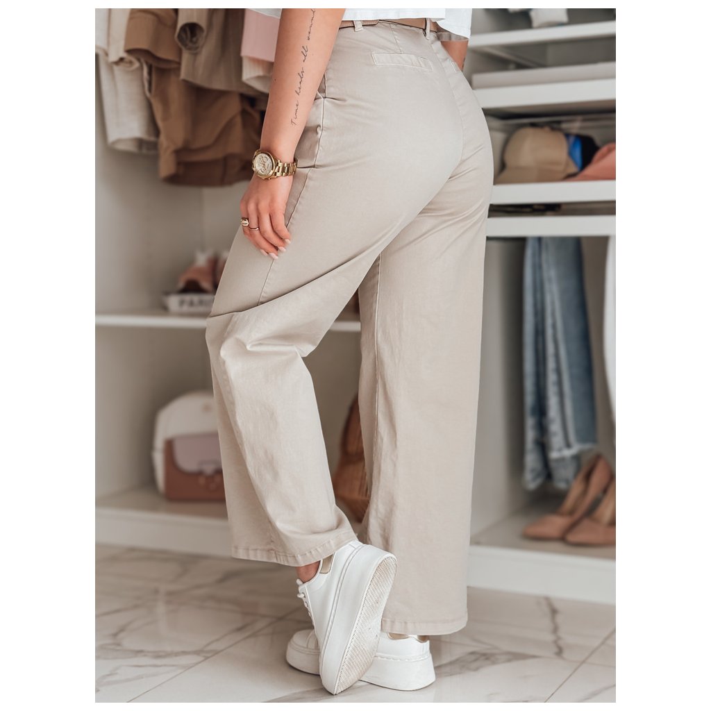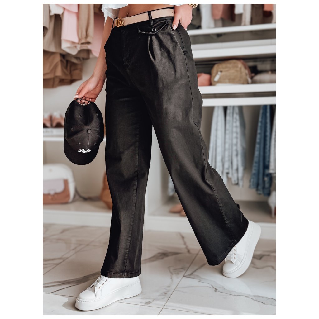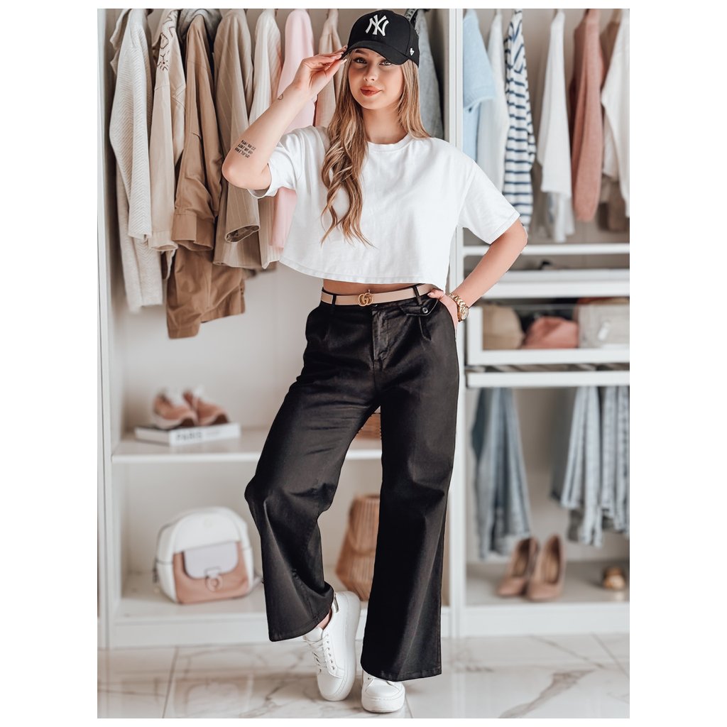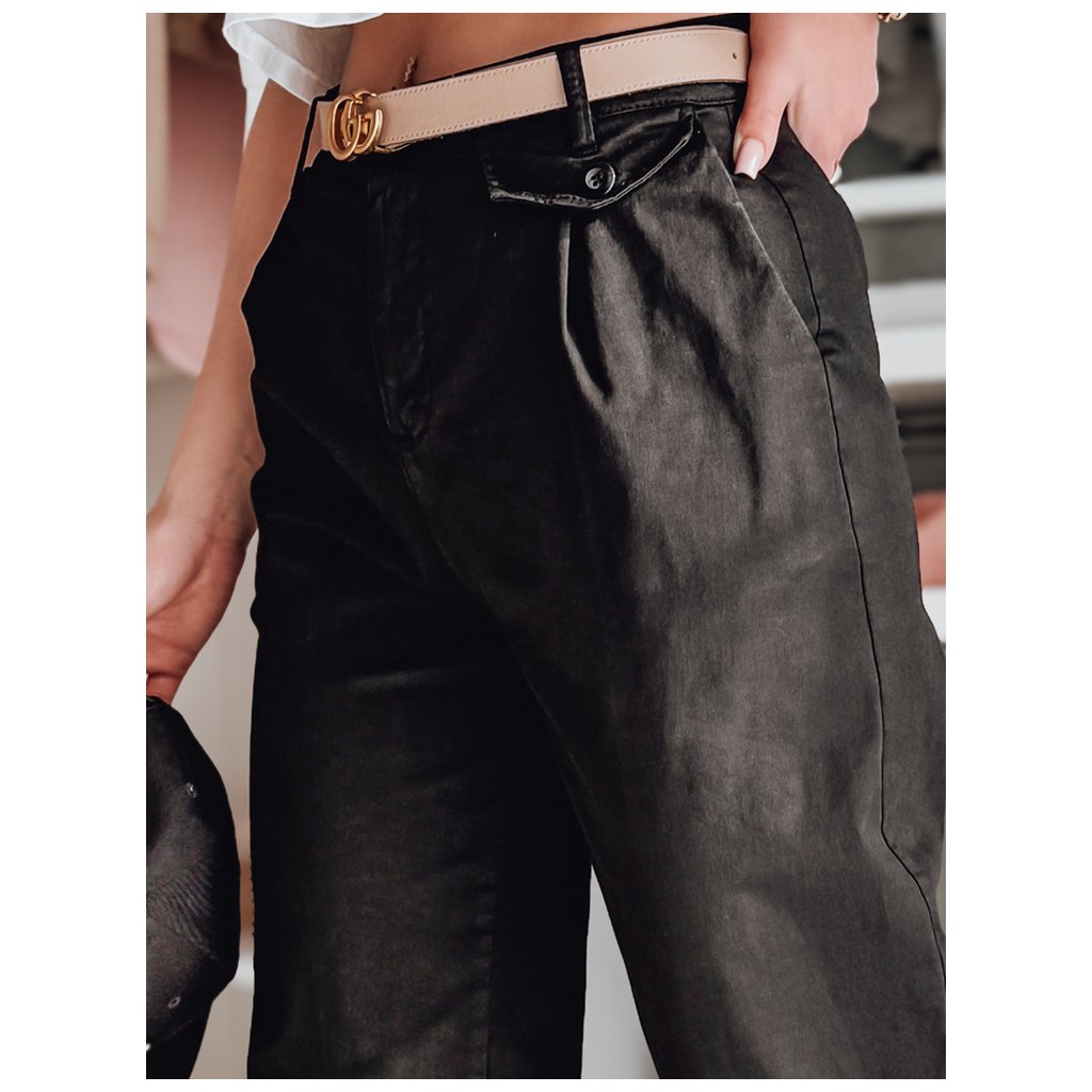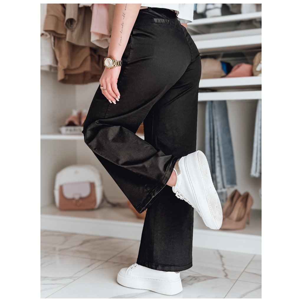 Tyto elegantní kalhoty s vysokým pasem a širokými nohavicemi jsou nezbytností v každém šatníku. Přiléhavý pas zdůrazňuje postavu, zatímco rozšířené nohavice opticky prodlužují. Zapínají se na zip a knoflík a mají ozdobné kapsy a okouzlující detaily, které dodávají kalhotám jedinečný nádech. Perfektně se hodí k elegantním košilím i ležérním tričkům.