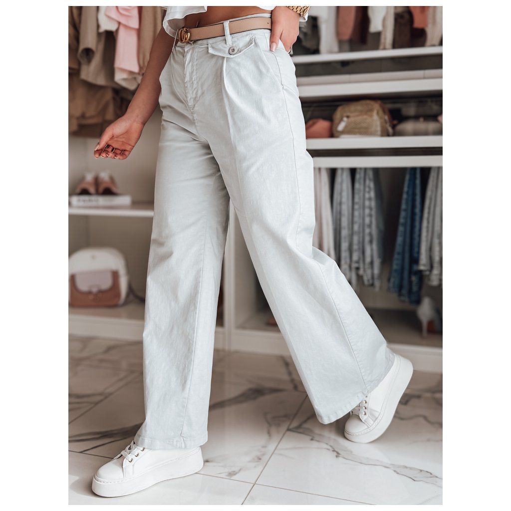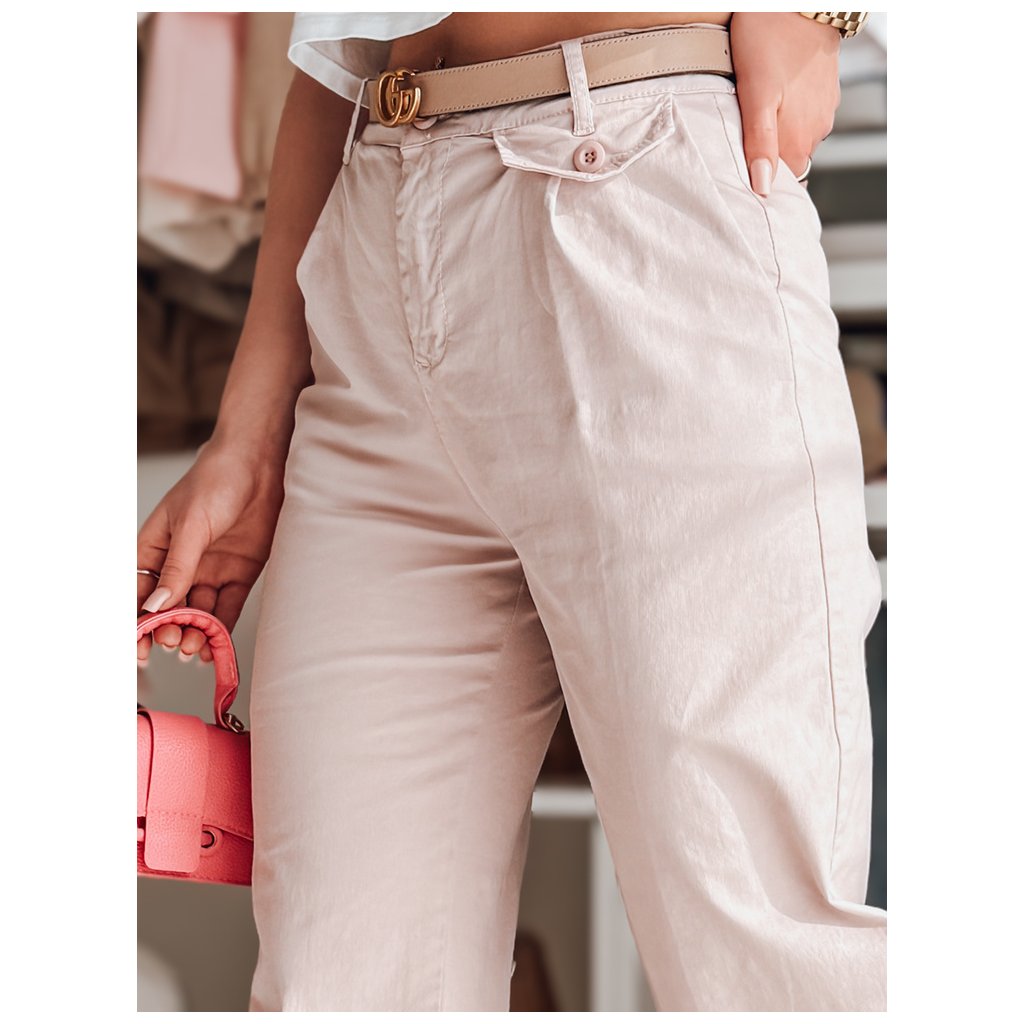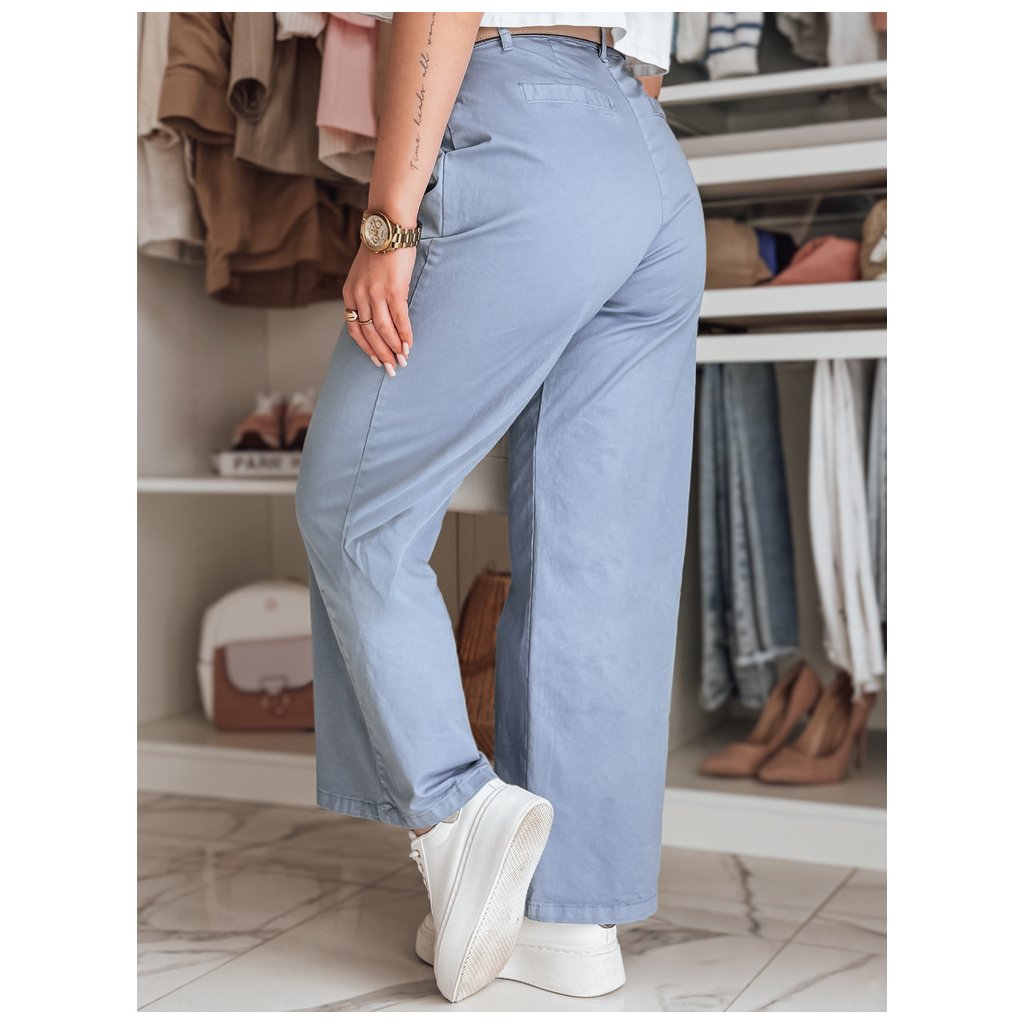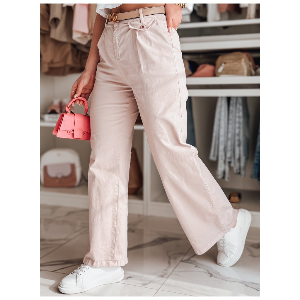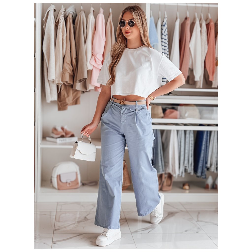Tyto elegantní kalhoty s vysokým pasem a širokými nohavicemi jsou nezbytností v každém šatníku. Přiléhavý pas zdůrazňuje postavu, zatímco rozšířené nohavice opticky prodlužují. Zapínají se na zip a knoflík a mají ozdobné kapsy a okouzlující detaily, které dodávají kalhotám jedinečný nádech. Perfektně se hodí k elegantním košilím i ležérním tričkům.