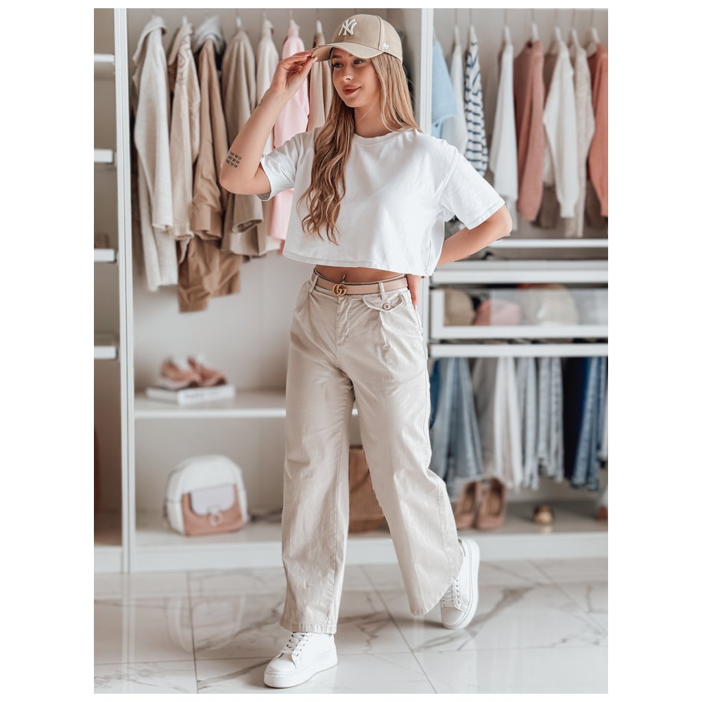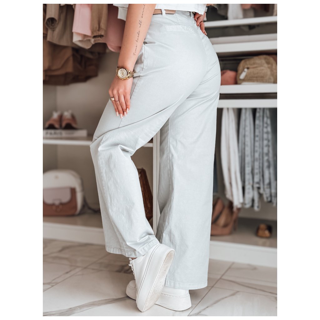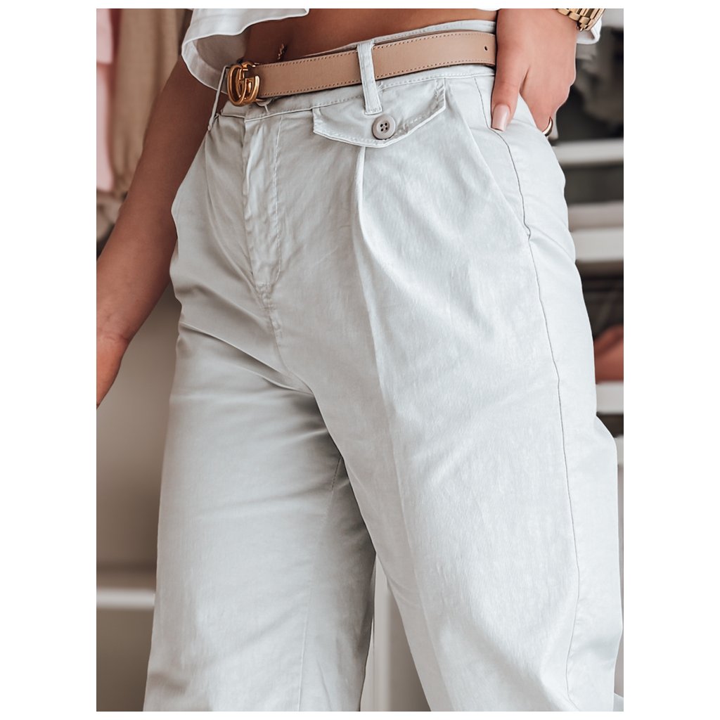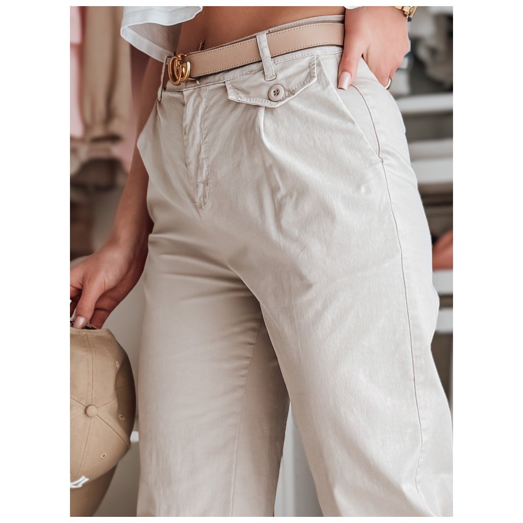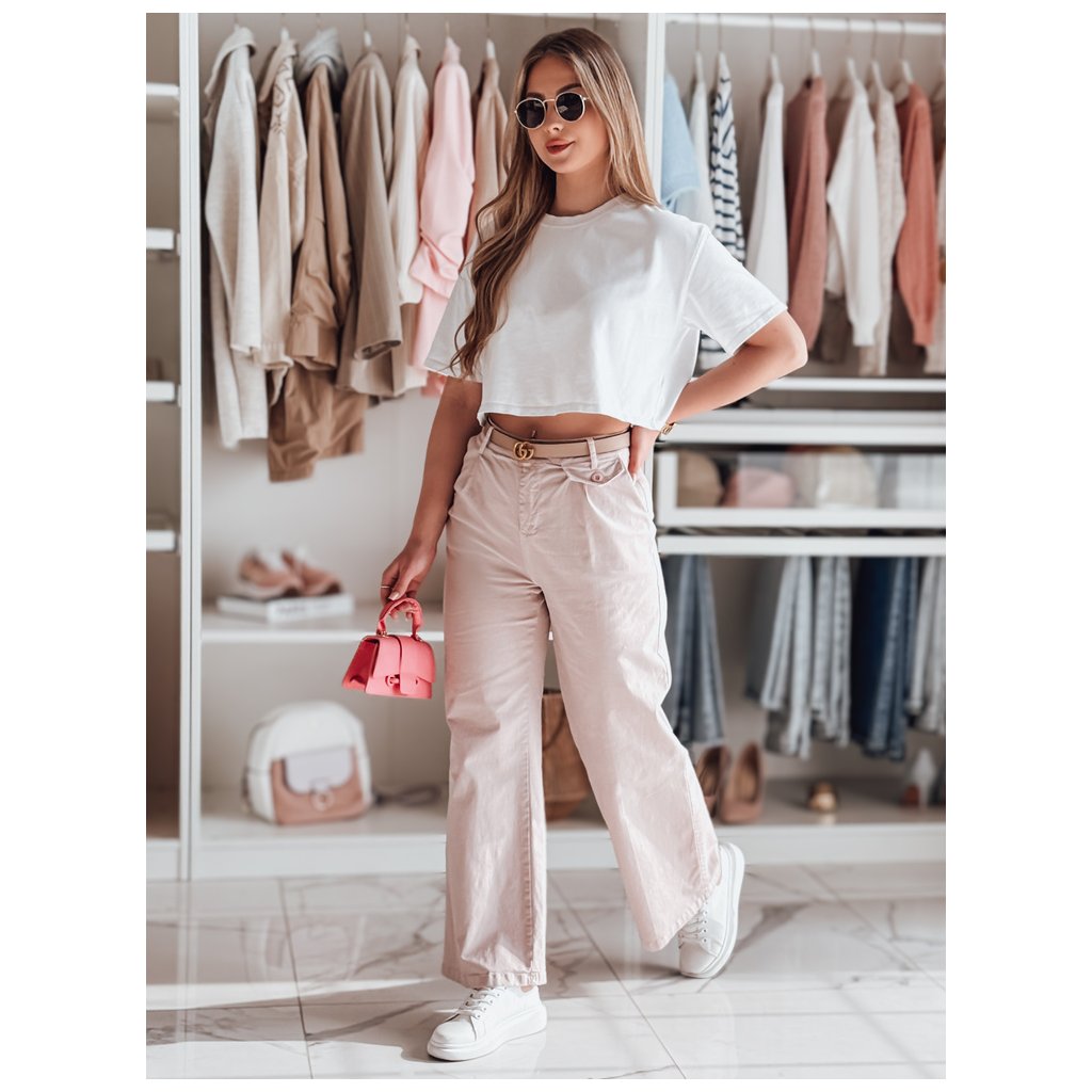 Tyto elegantní kalhoty s vysokým pasem a širokými nohavicemi jsou nezbytností v každém šatníku. Přiléhavý pas zdůrazňuje postavu, zatímco rozšířené nohavice opticky prodlužují. Zapínají se na zip a knoflík a mají ozdobné kapsy a okouzlující detaily, které dodávají kalhotám jedinečný nádech. Perfektně se hodí k elegantním košilím i ležérním tričkům.