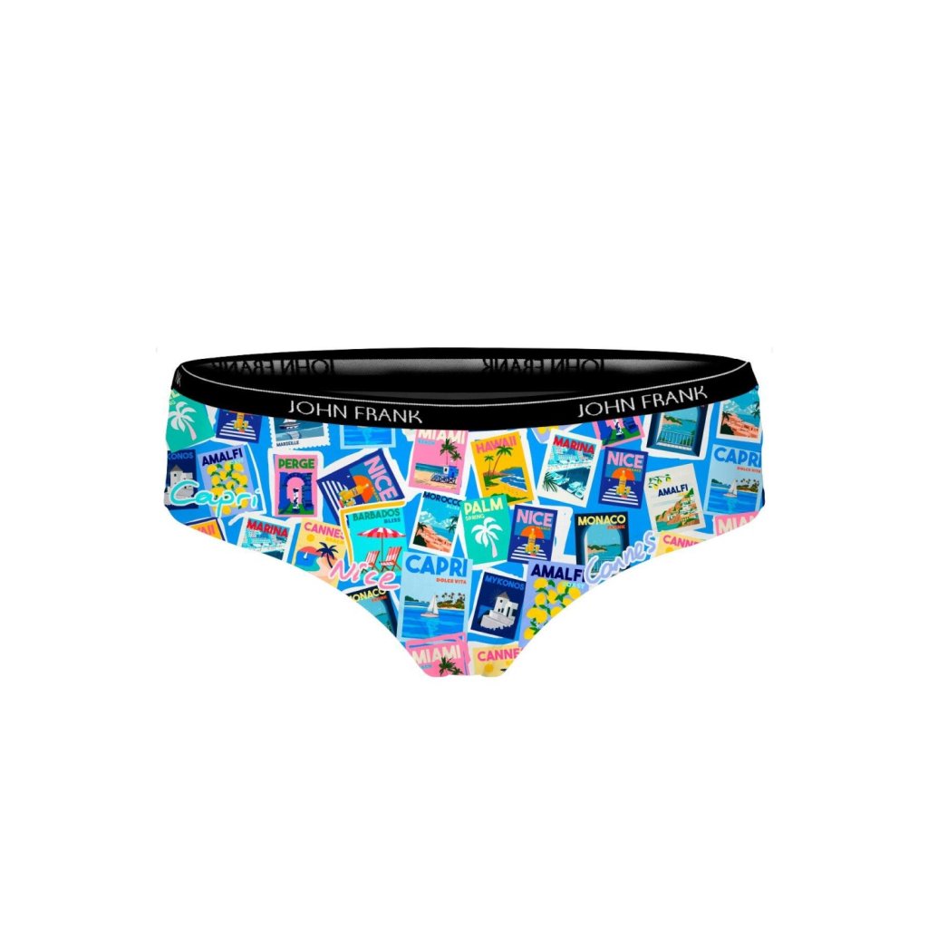 Dámské kalhotky střihu hipster od značky John Frank z vysokého podílu bavlny. Kalhotky s módně zpracovaným potiskem jsou velmi příjemné na dotek a pohodlné při nošení. Jemná, středně široká guma v pase má kolem logo John Frank. Do vnitřního dílu je zapracován bavlněný klínek pro komfortní nošení.
