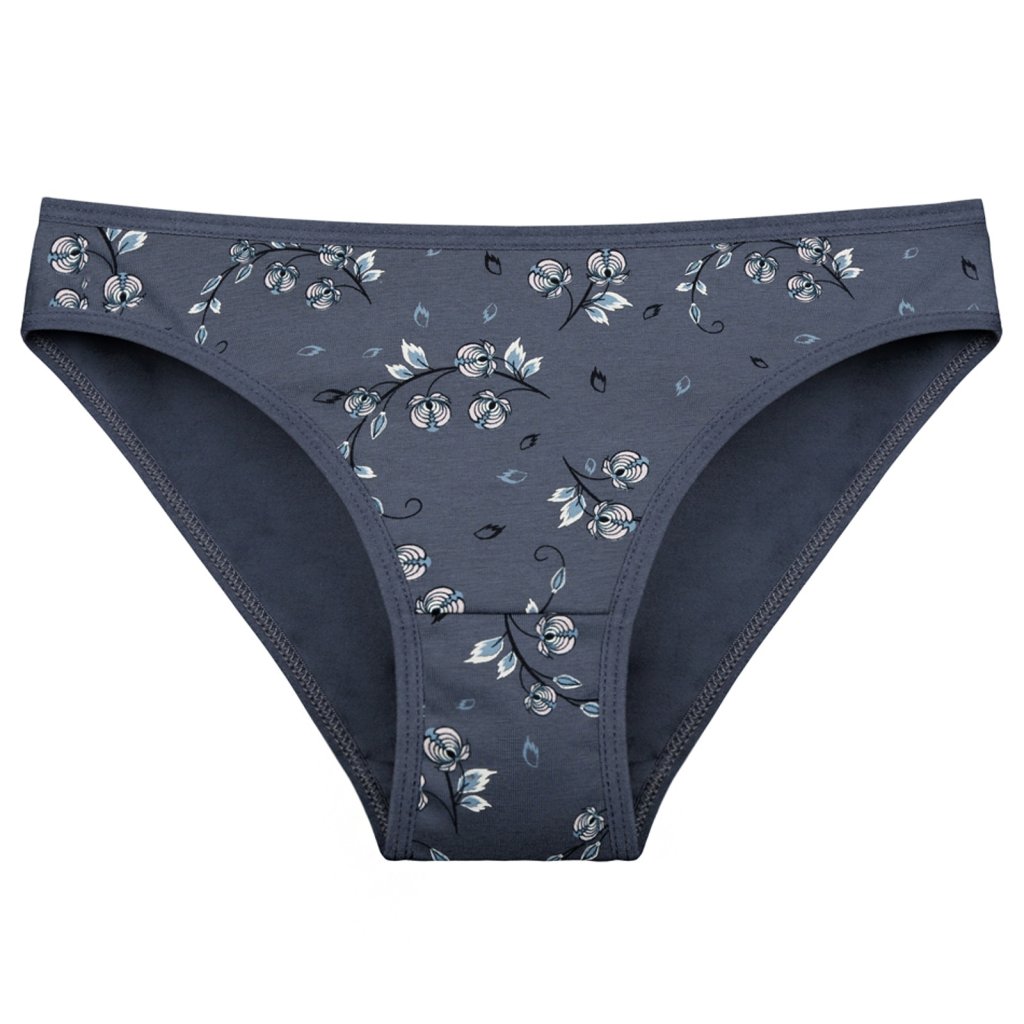 Dámské bavlněné kalhotky Emily. Slušivé klasické kalhotky s květinovým potiskem jsou pohodlným typem spodního prádla pro všechny příležitosti. Obzvláště oceníte materiálové složení - 95% bavlna a 5% elasten. Použitý materiál je příjemný a poddajný na dotek.