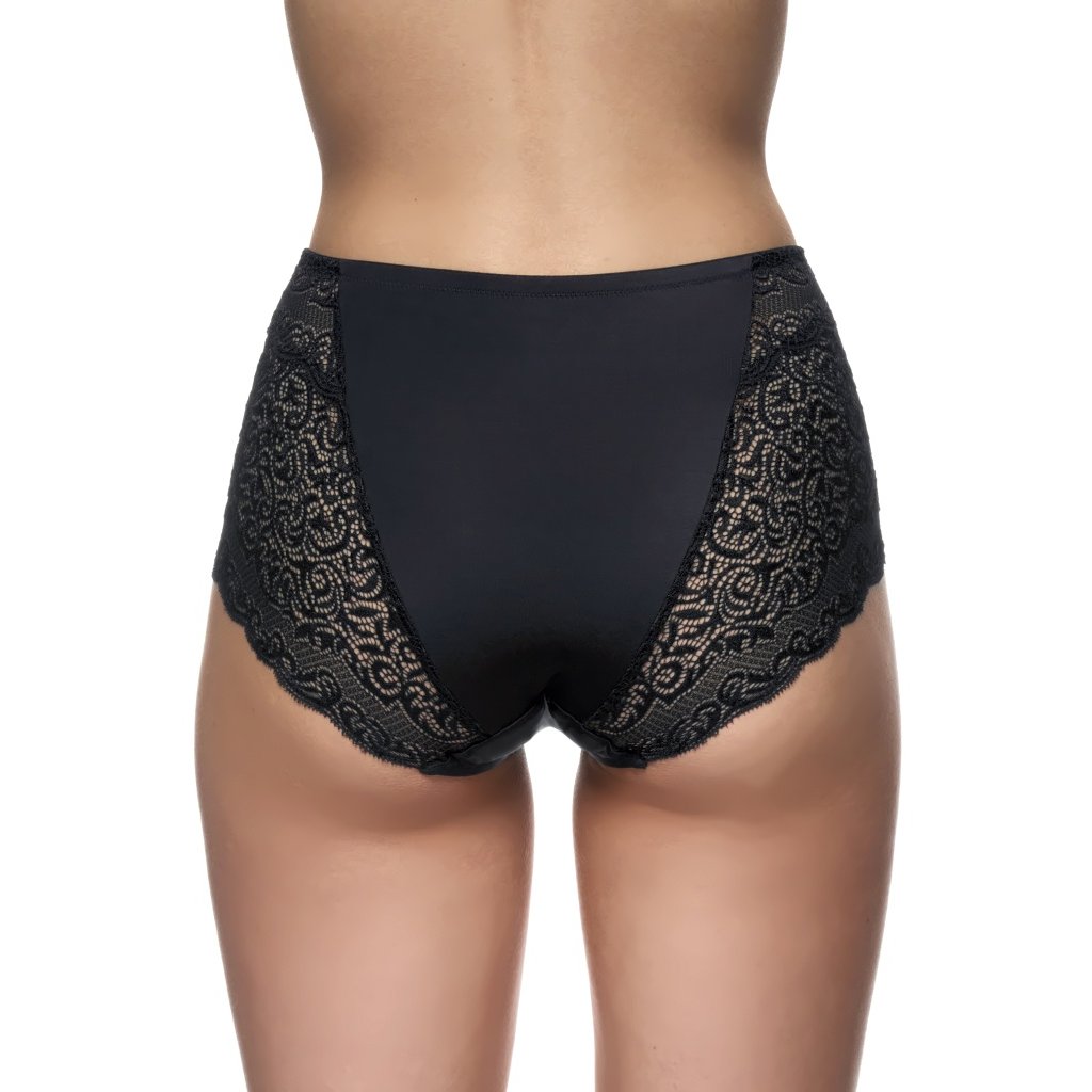 Dámské vyšší kalhotky značky Fantasy. Kalhotky mají vyšší pas a krásně vytvarují postavu pod oblečením. Mají mírně stahovací efekt. Přední a zadní část kalhotek je ušitá z hladké látky - mikrovlákna. Nohavičky kalhotek na bocích lemuje pružná ozdobná krajka. Uprostřed je všitý bavlněný klínek pro pohodlné nošení.