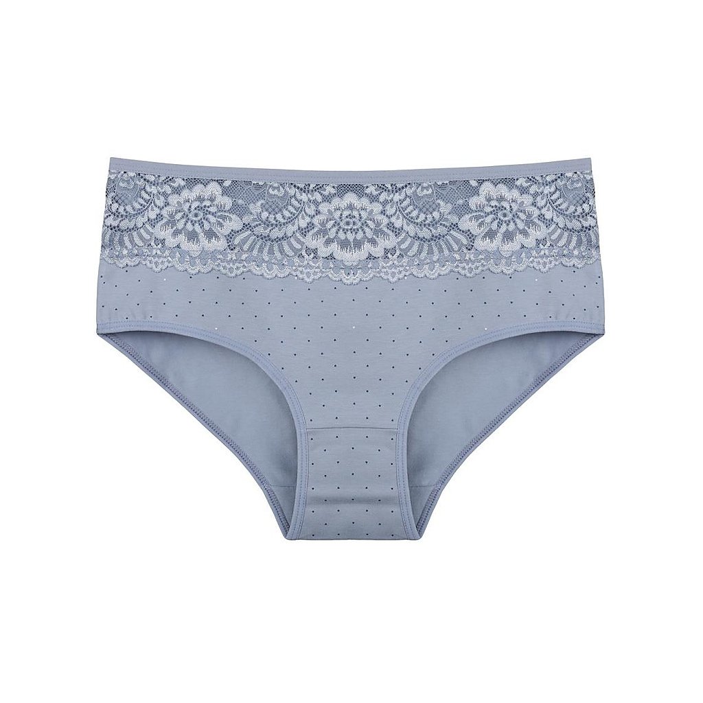 Dámské kalhotky Filipa. Dámské kalhotky klasického střihu. Kalhotky jsou ozdobeny drobným potiskem a na předním díle krajkou. Použitý materiál je příjemný a poddajný na dotek.