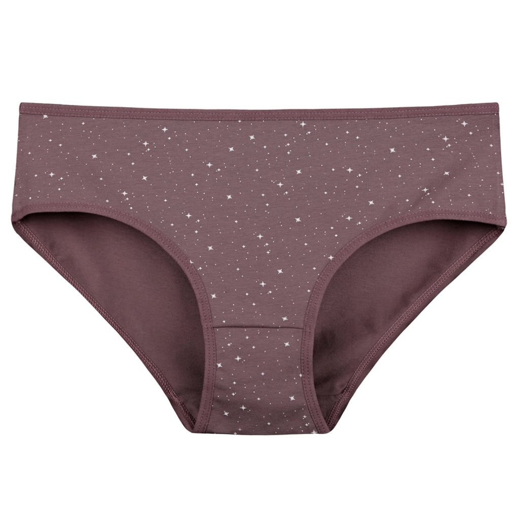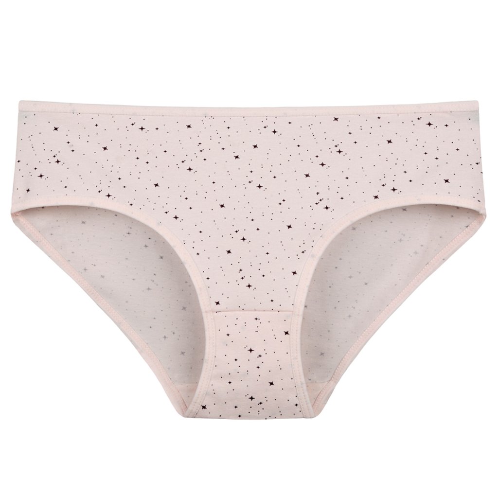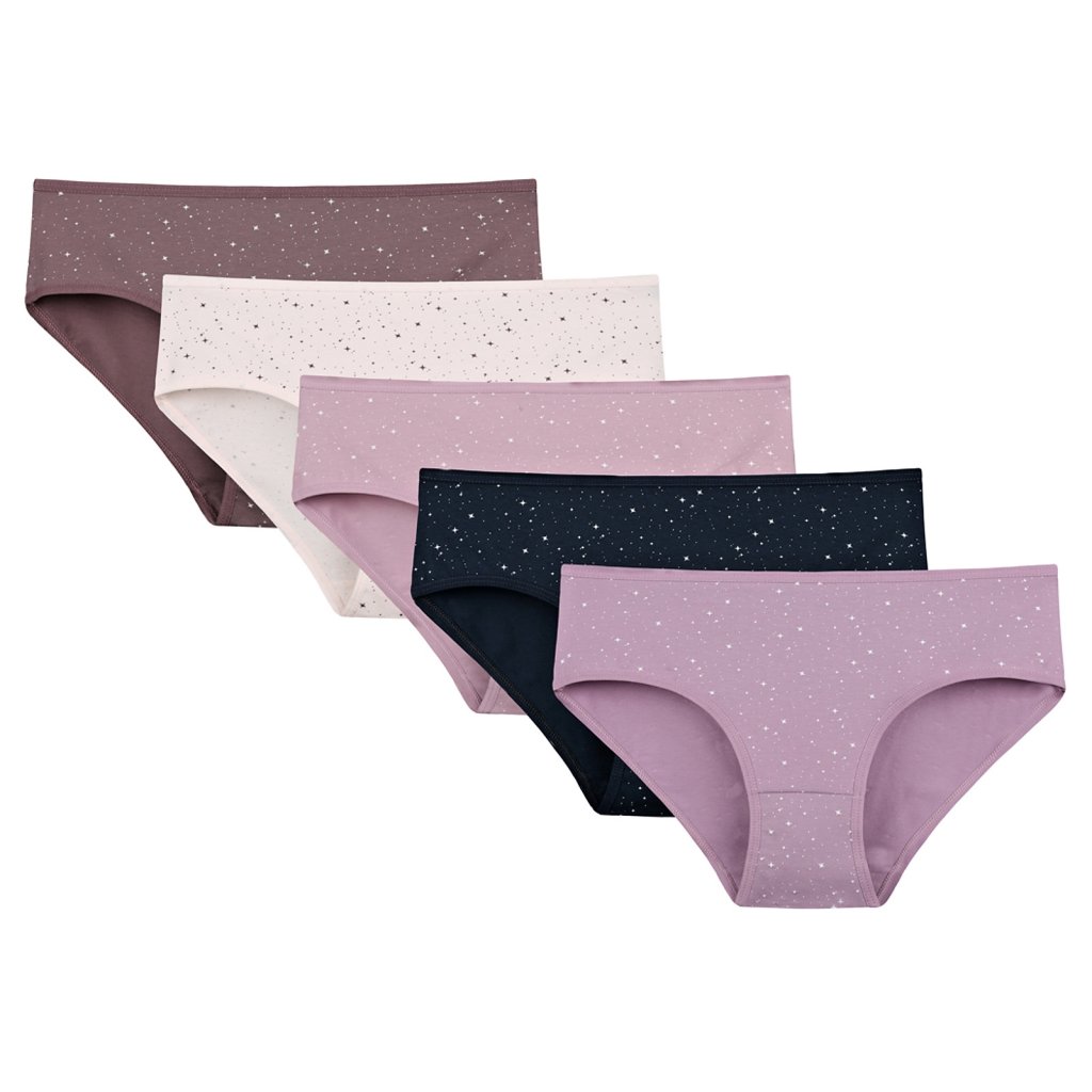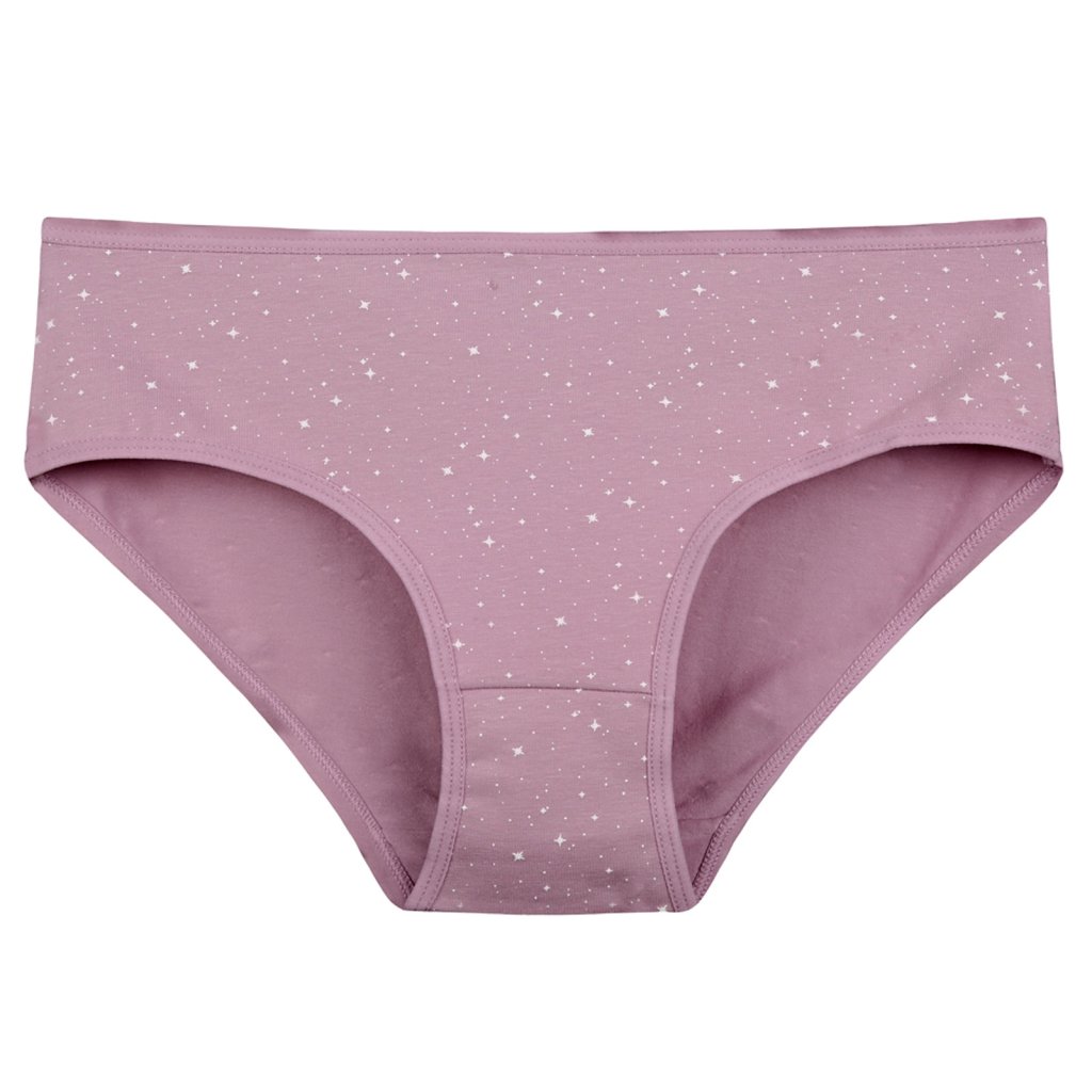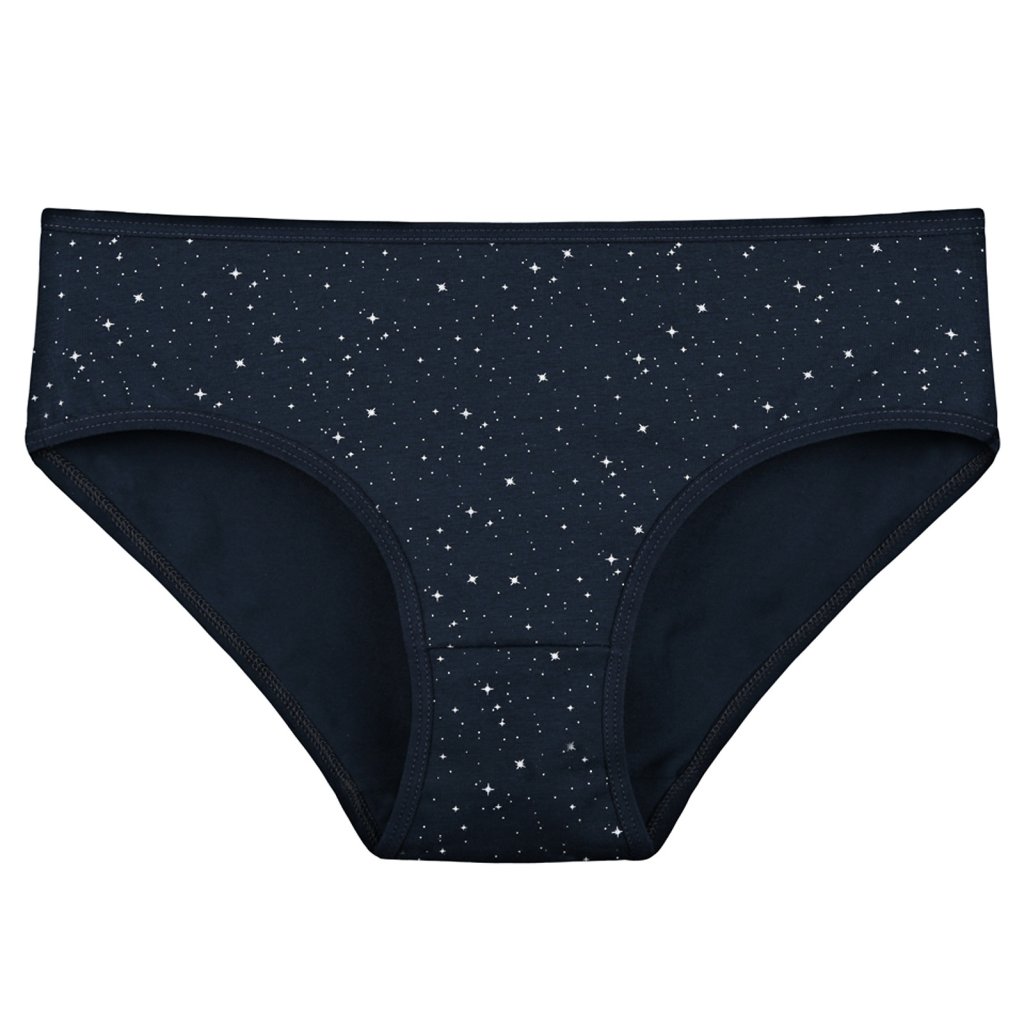Dámské bavlněné kalhotky Hvězdička. Slušivé klasické vyšší kalhotky s potiskem hvězdiček jsou pohodlným typem spodního prádla pro všechny příležitosti. Obzvláště oceníte materiálové složení - 95% bavlna a 5% elasten. Použitý materiál je příjemný a poddajný na dotek.