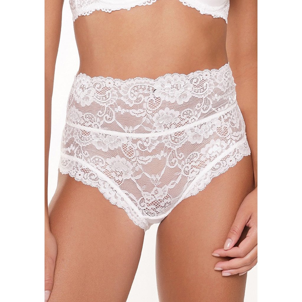 Elegantní kalhotky s vysokým pasem z kolekce Fantasy 1400B v odstínu ivory zaujmou romantickým vzhledem a smyslnými detaily. Jsou ušité z jemné elastické krajky, která působí lehce a ženskě. Přední část je decentní, zatímco zadní strana překvapí sexy šněrováním, které dodává celému modelu originální nádech. Vysoký pas krásně tvaruje postavu a poskytuje pohodlí při nošení. Ideální v kombinaci s podprsenkou ze stejné kolekce.
