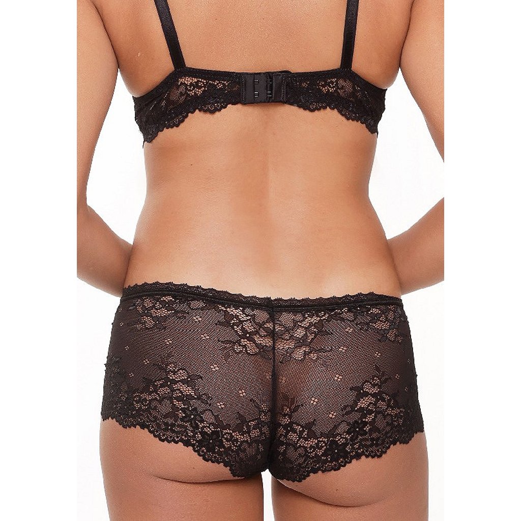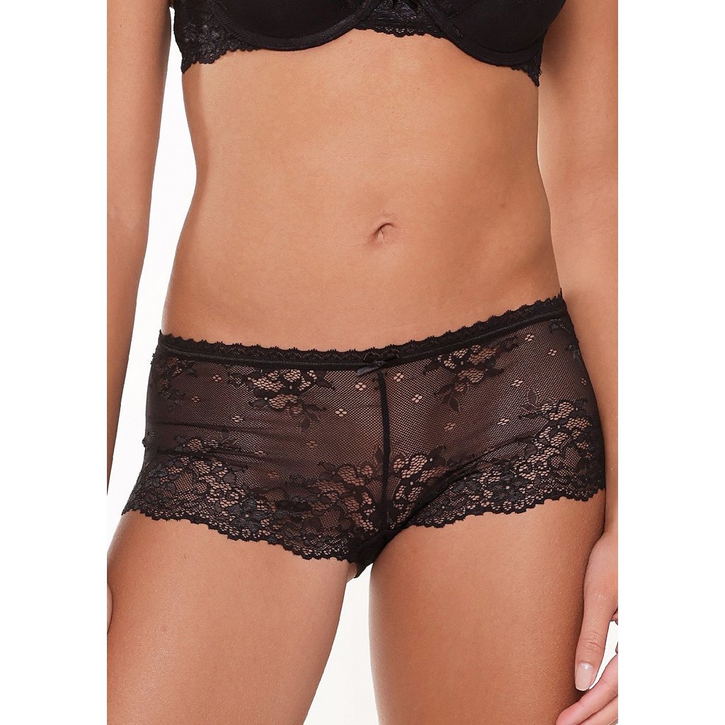Dámské kalhotky šortkového střihu od značky LingaDore. Kalhotky jsou celokrajkové s květinovým vzorem. Na přední části mají saténovou mašličku. S podprsenkou 1400-1 vytvoří nádhernou soupravu.