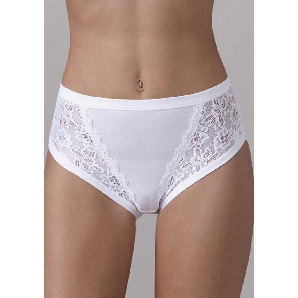 Dámské kalhotky vyššího střihu od značky Lovelygirl. Kalhotky jsou vyrobeny z bavlny a elastanu. Přední část je kombinována s elastickou krajkou s jemným květinovým vzorem. V balení jsou dvoje bílé kalhotky a jedny v červné barvě.