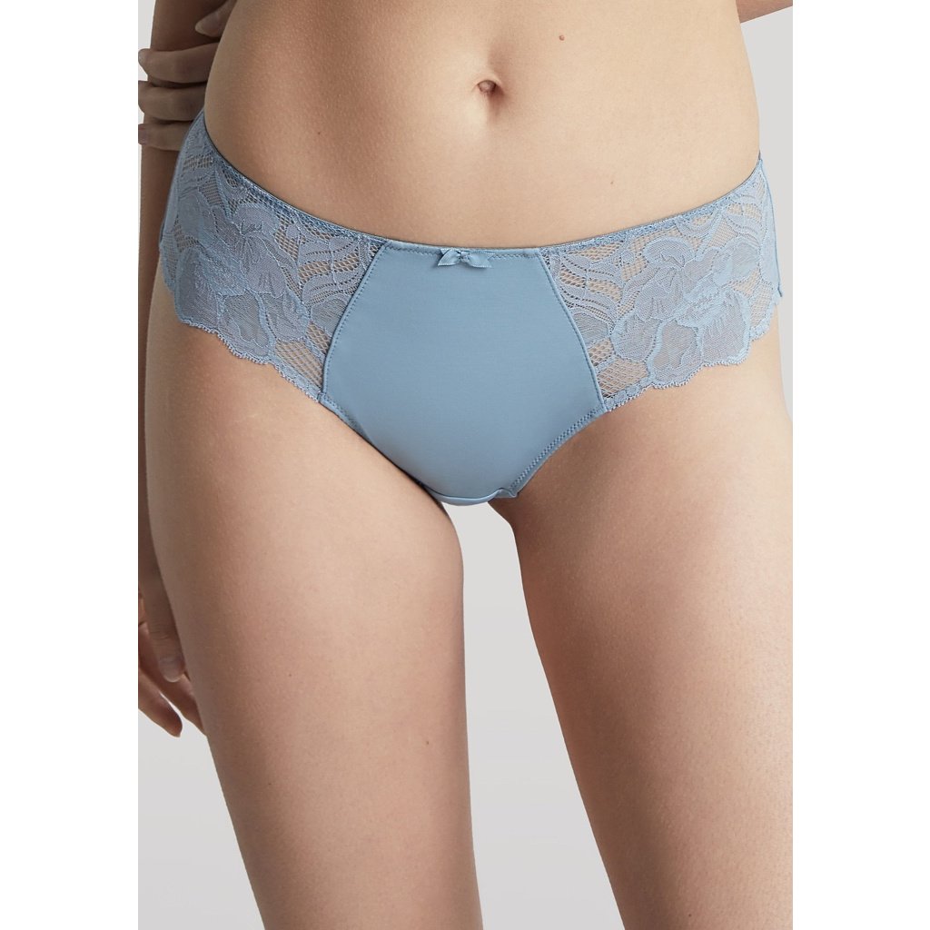 Dámské kalhotky vyššího střihu značky Panache. Kalhotky jsou brazilkového střihu a jsou vyrobeny z příjemného mikrovlákna. Přední část je kombinována se vsadkami s elastickou krajkou s jemným květinovým vzorem a malou mašličkou. Do vnitřního dílu je zapracován bavlněný klínek pro komfortní nošení.