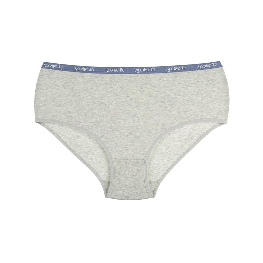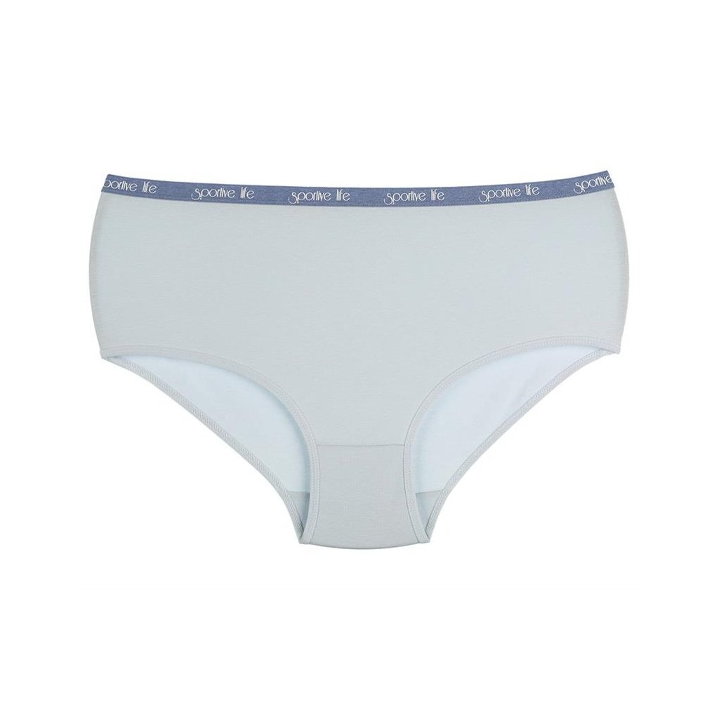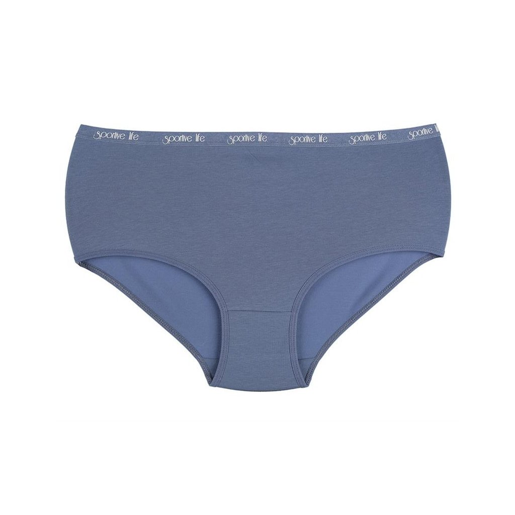 Dámské kalhotky Viola. Pohodlné dámské jednobarevné kalhotky jsou ozdobené modrou gumičkou s nápisem 'Sportive life'. Použitý materiál je jemný a poddajný na dotek.