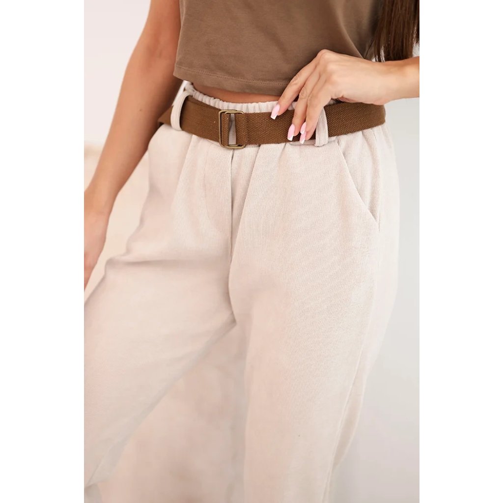 Pokud hledáte ideální kalhoty na každodenní nošení, které kombinují pohodlí s módním vzhledem – tento model bude trefou do černého! Dámské kalhoty s páskem v jemném pruhu jsou vyrobeny z měkkého, elastického materiálu, který se krásně přizpůsobuje postavě a zajišťuje volnost pohybu.