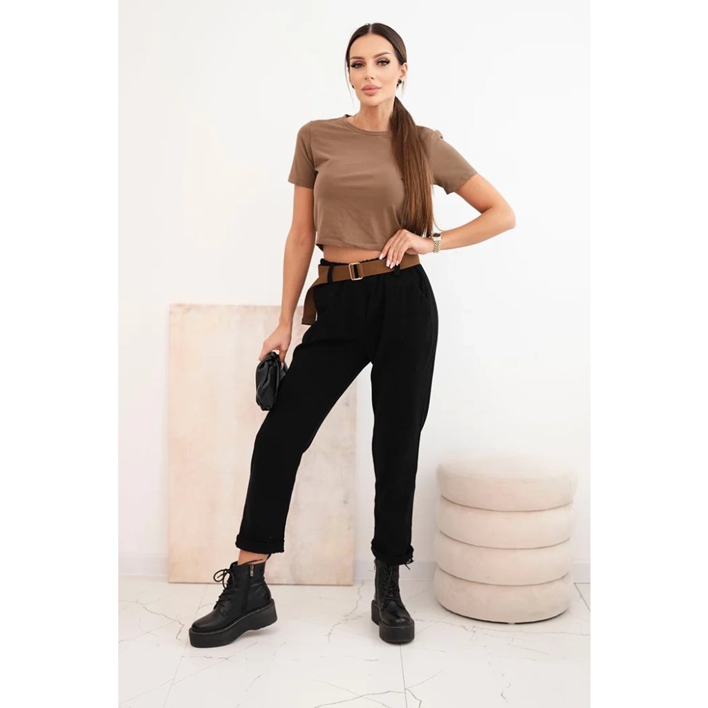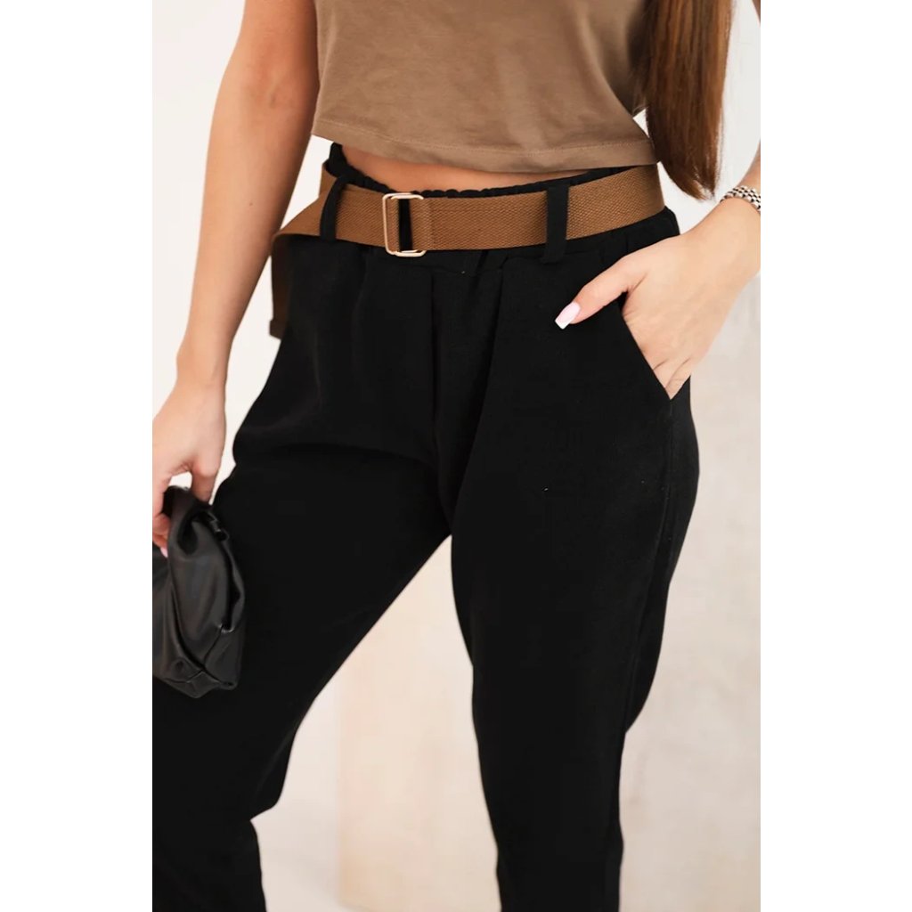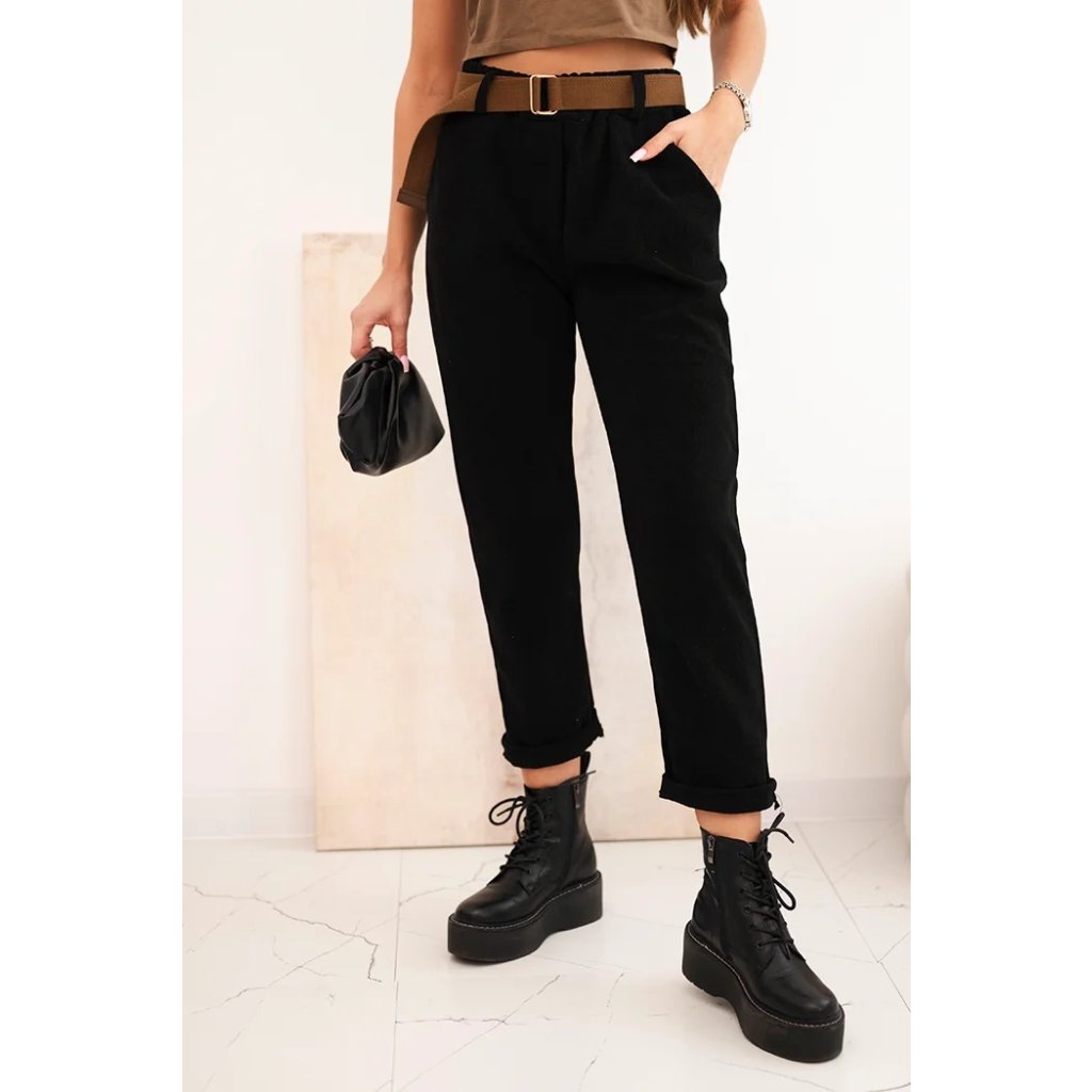 Vyšší pas opticky prodlužuje nohy a zvýrazňuje pas, a přiložený látkový pásek v kontrastní barvě dodává celku charakter. Skvěle se hodí jak k neformálním stylizacím s tričkem, tak i v elegantnější variantě s košilí a sakem. Elastický pas zajišťuje, že jsou nesmírně pohodlné na nošení po celý den.