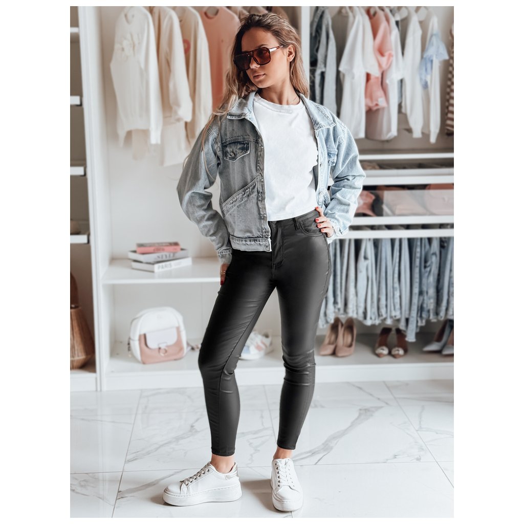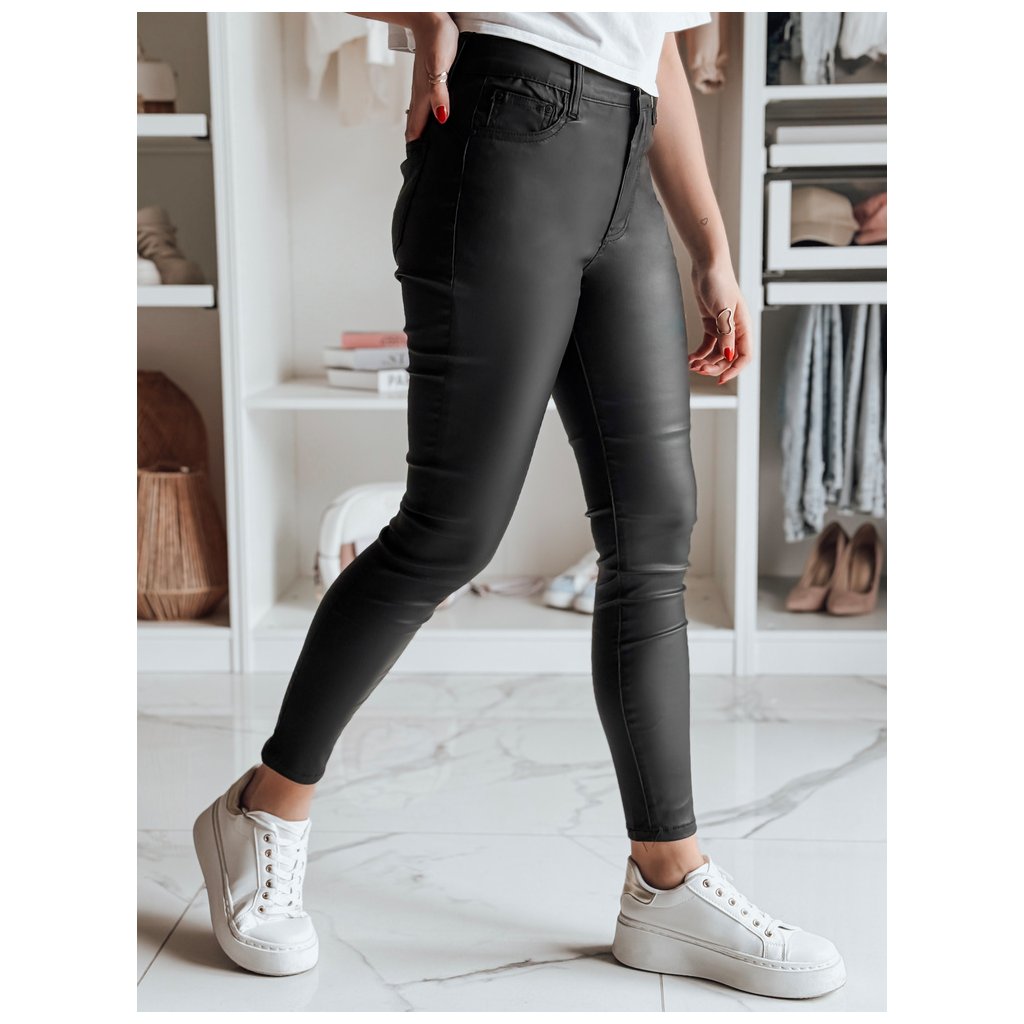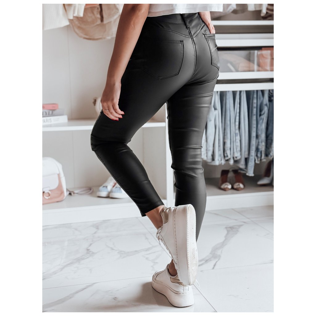 Tyto úzké kalhoty s koženým efektem jsou moderní volbou pro ženy, které oceňují minimalismus s prvkem. Díky klasickému zapínání na knoflíky, kapsám a vysokému pasu tyto kalhoty krásně tvarují pas. Pružný materiál je činí neuvěřitelně pohodlnými na nošení. Ideální pro stylové jarní outfity.