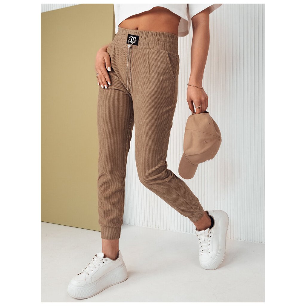 Tyto tepláky DERCY kombinují styl a pohodlí. Jsou vyrobeny z pohodlného manšestru a mají vysoký pas pro pohodlí a perfektní střih. Nastavitelný pas a manžety na kotnících umožňují individuální střih a stylová nášivka dodává kalhotám charakter. Jsou perfektní volbou pro ty, kteří si cení městského stylu a praktičnosti.
