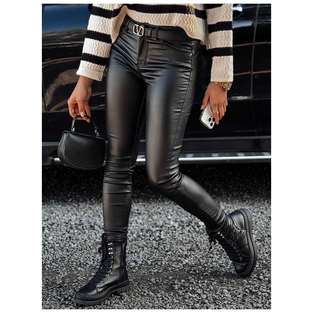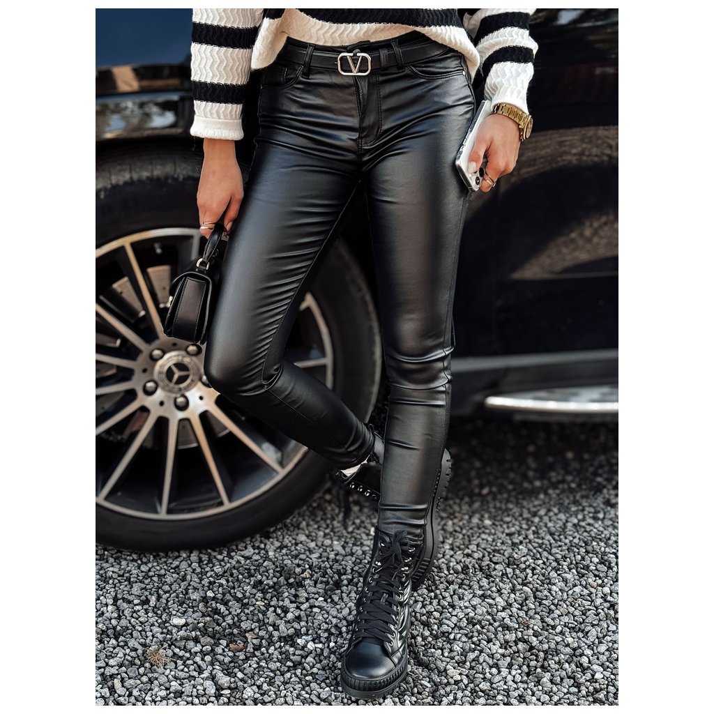 Tyto moderní kalhoty z umělé kůže se vyznačují perfektním střihem, který dokonale lichotí postavě. Pružný materiál umožňuje naprostou volnost pohybu bez kompromisů v oblasti stylu. Jsou ideální jak pro ležérní, tak i pro elegantnější outfity. Nezbytný kousek šatníku každé ženy, která si cení módy a pohodlí.