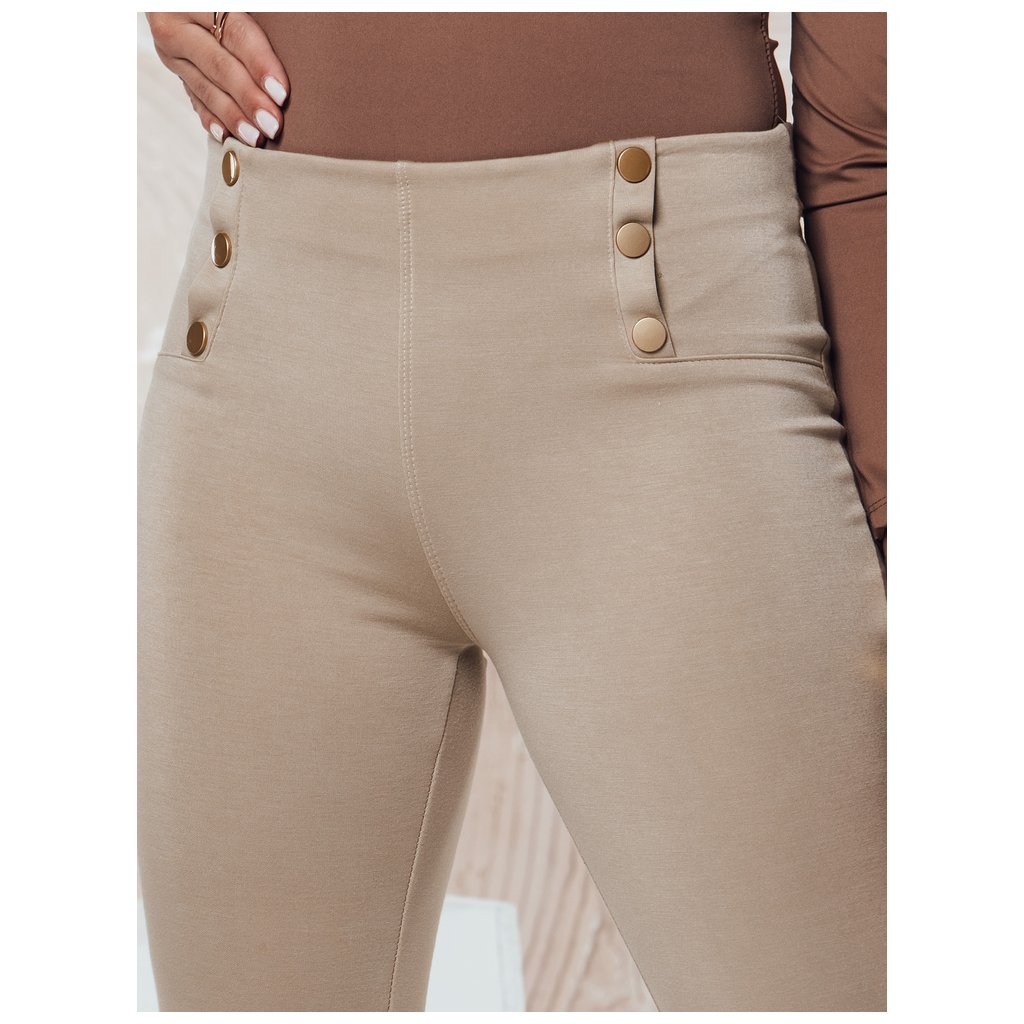 Tyto přiléhavé kalhoty s vysokým pasem poskytují výjimečné pohodlí a moderní vzhled. Dekorativní knoflíky dodávají kalhotám jedinečný nádech, zatímco pružná látka lichotí postavě. Ideální pro každodenní nošení nebo elegantní večerní outfity.