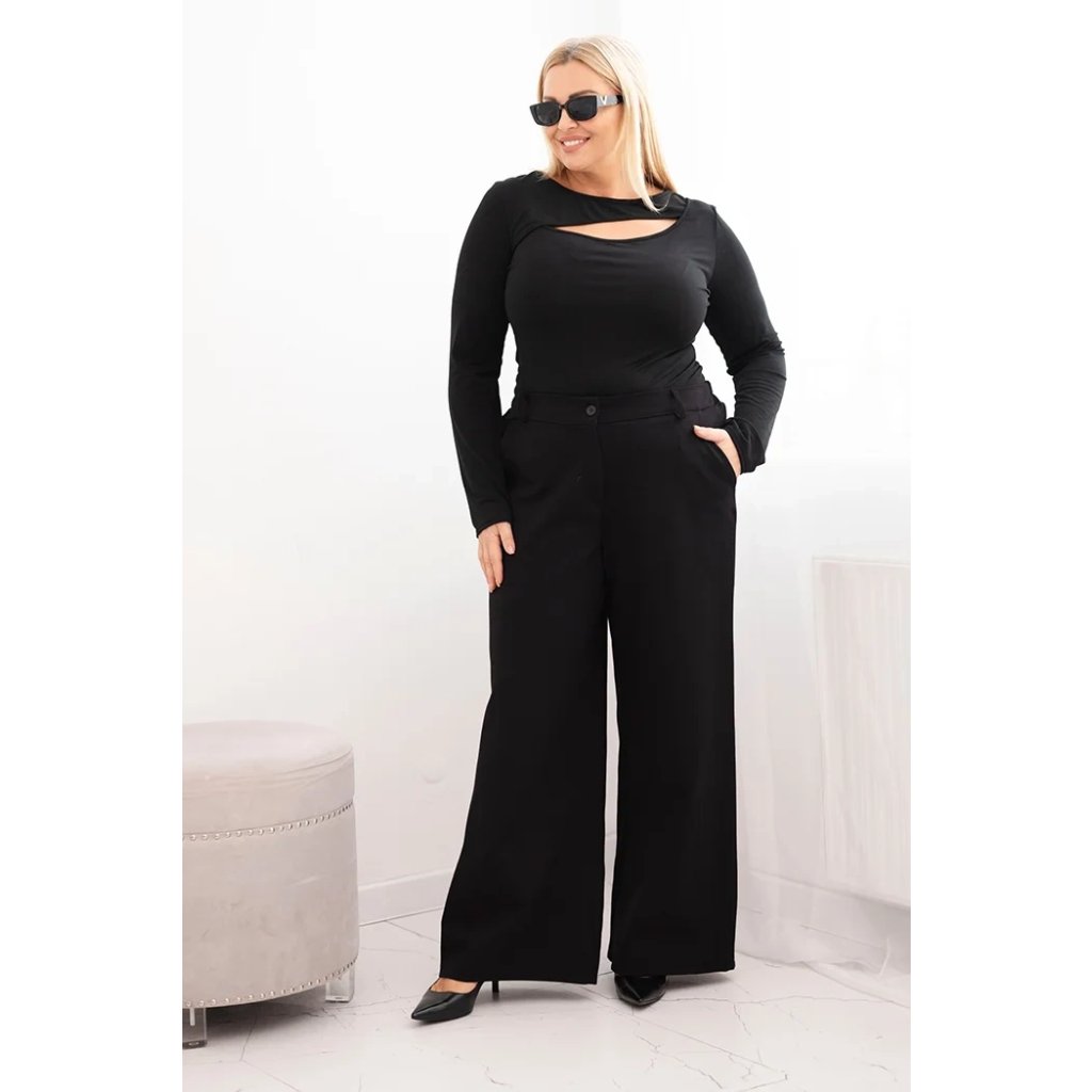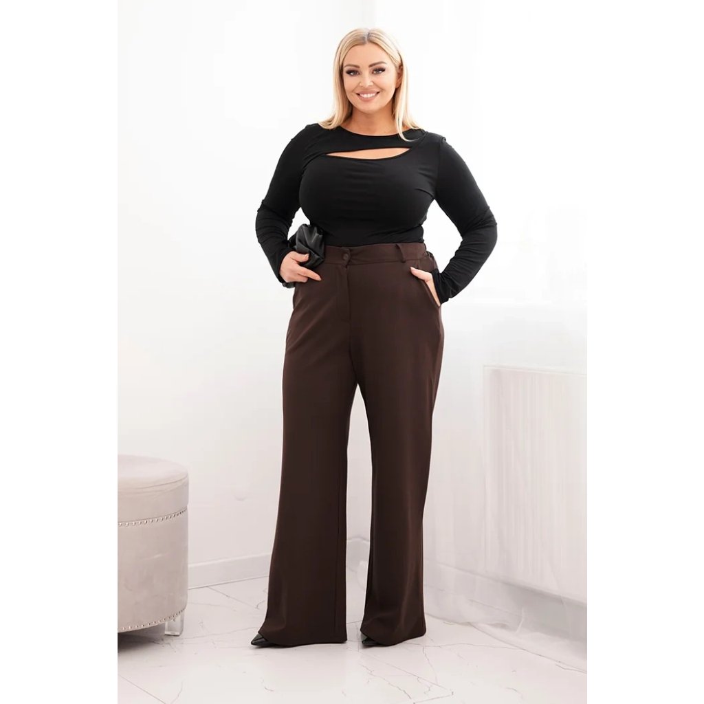Dámské kalhoty Plus Size s širokou nohavicí a elastickým pasem
