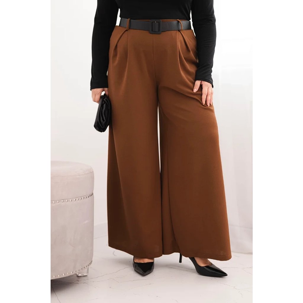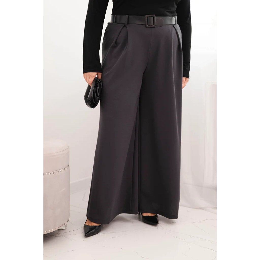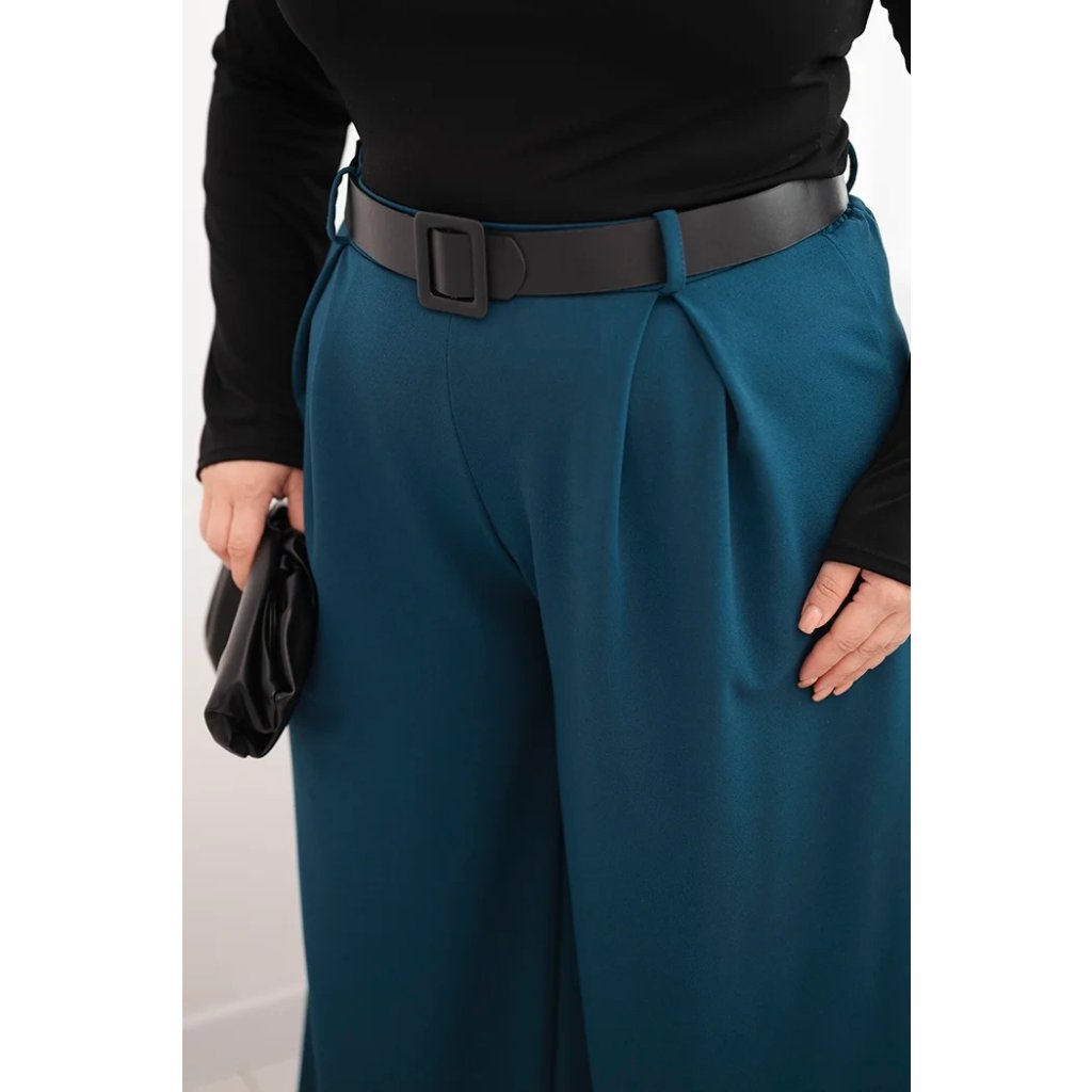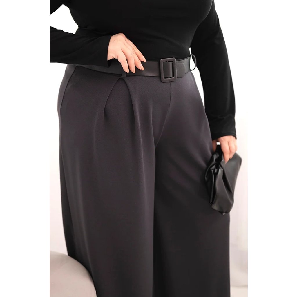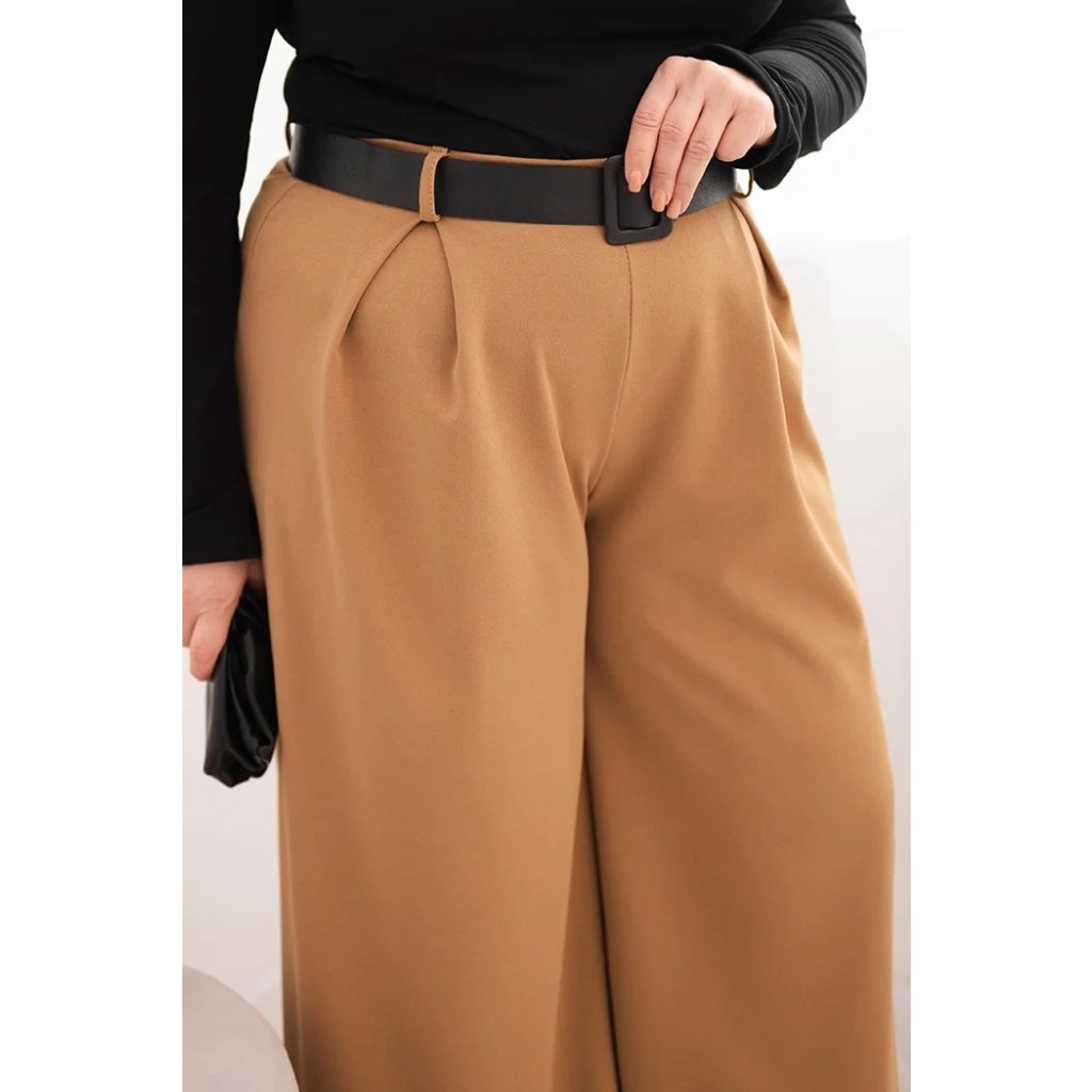 Dámské kalhoty Plus Size s širokou nohavicí a páskem