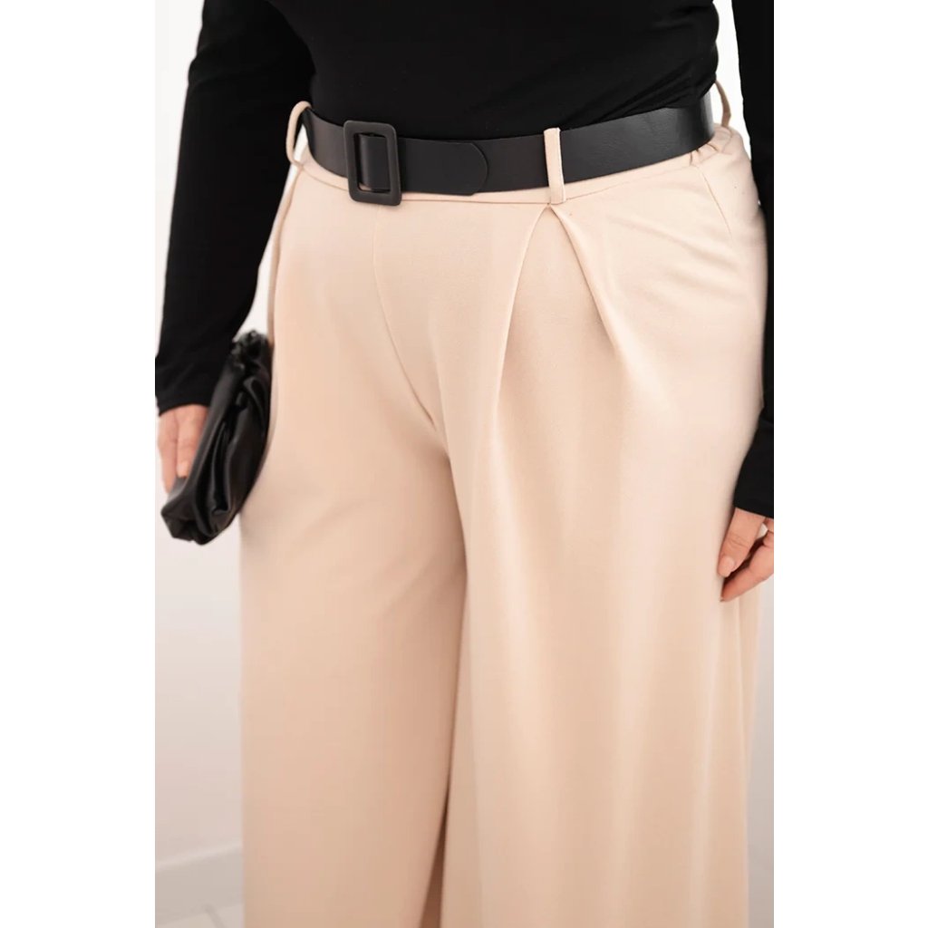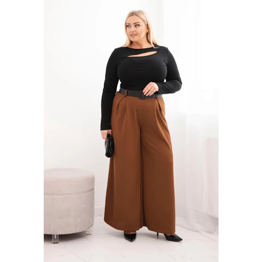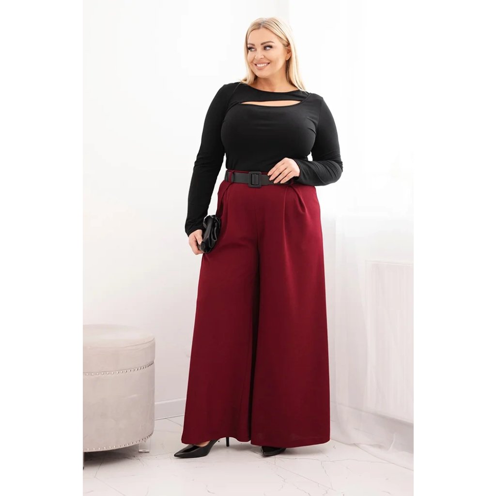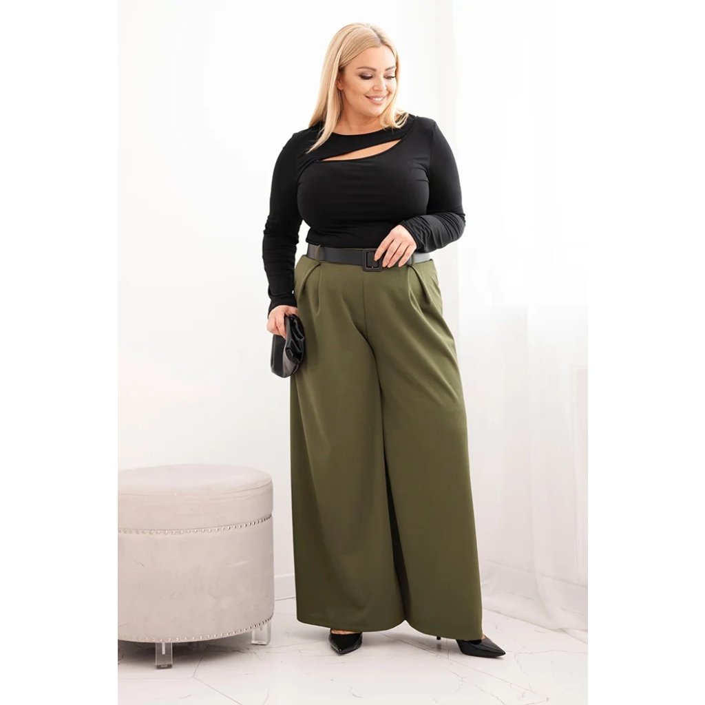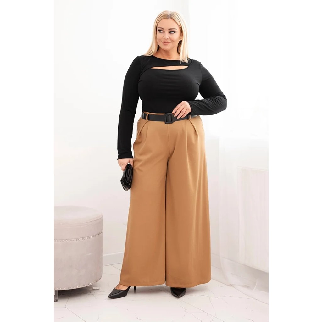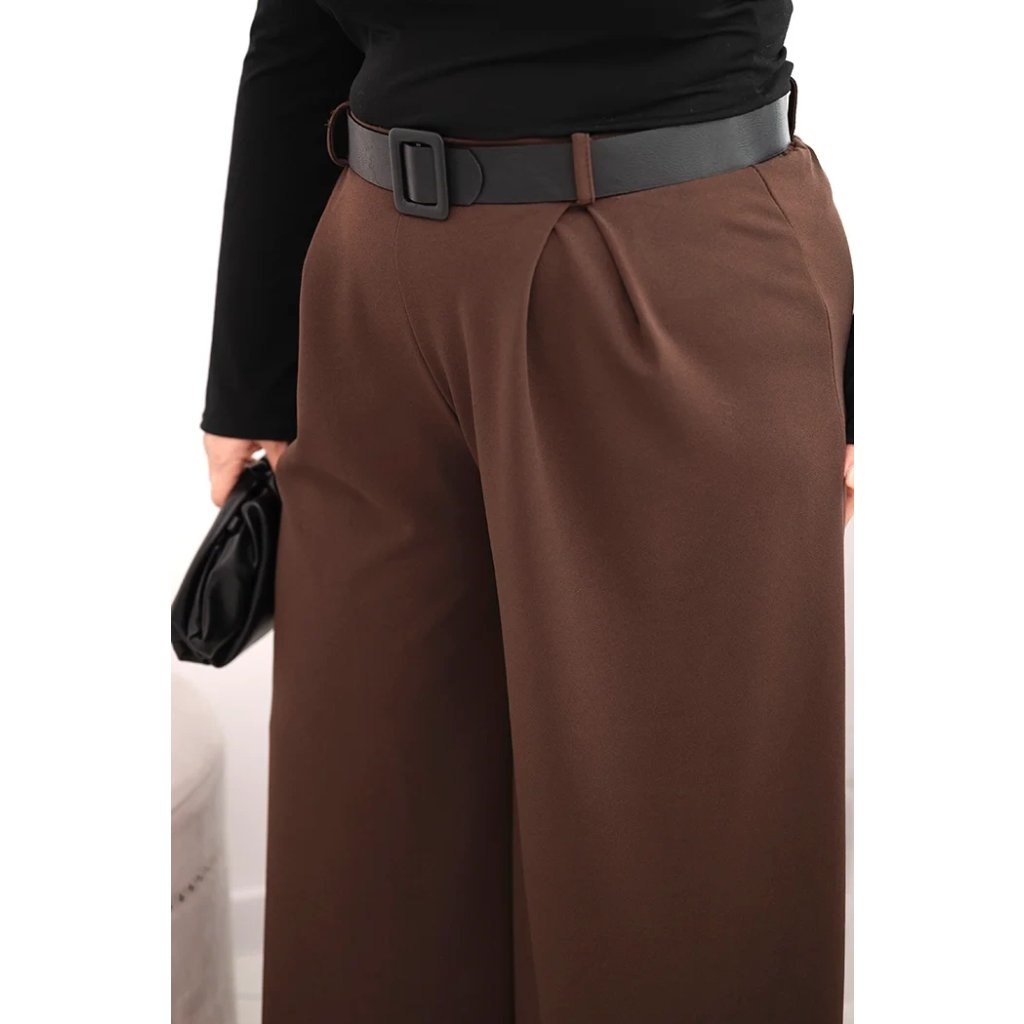 Dámské kalhoty Plus Size s širokou nohavicí a páskem