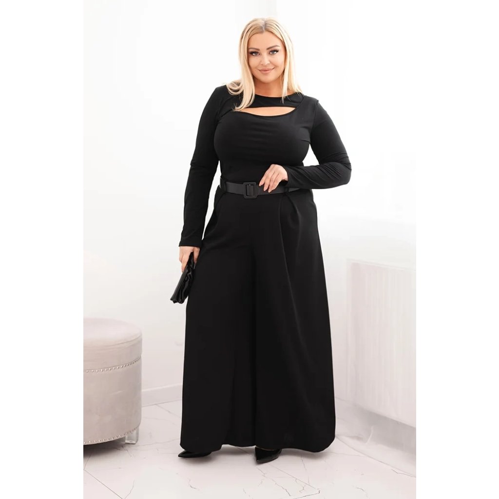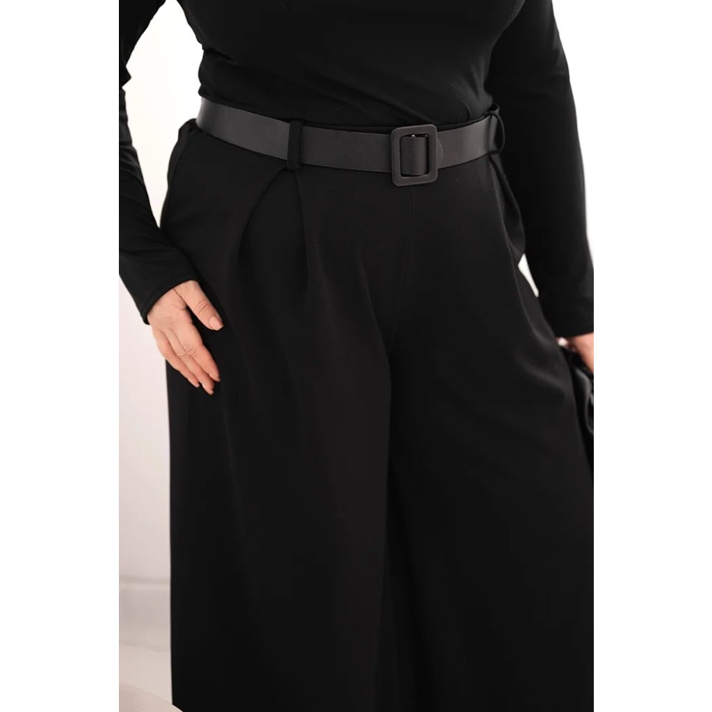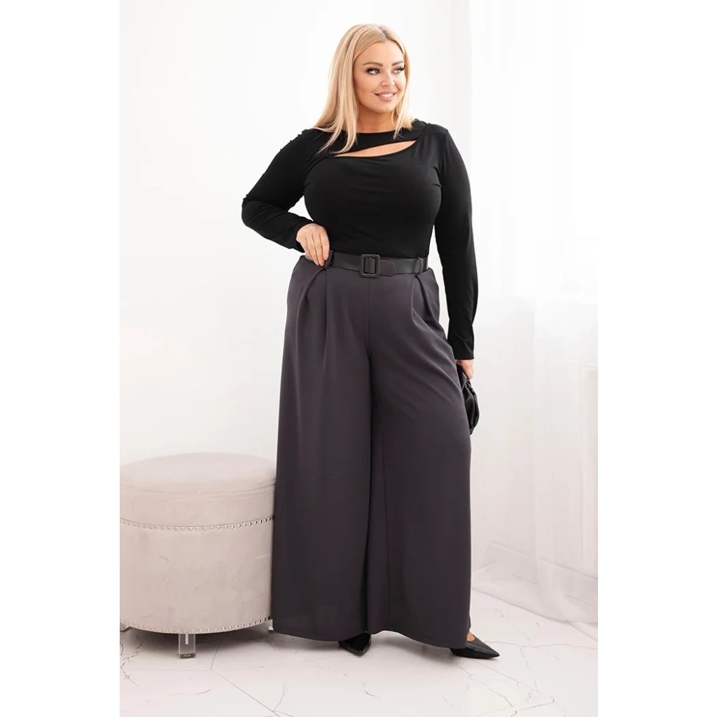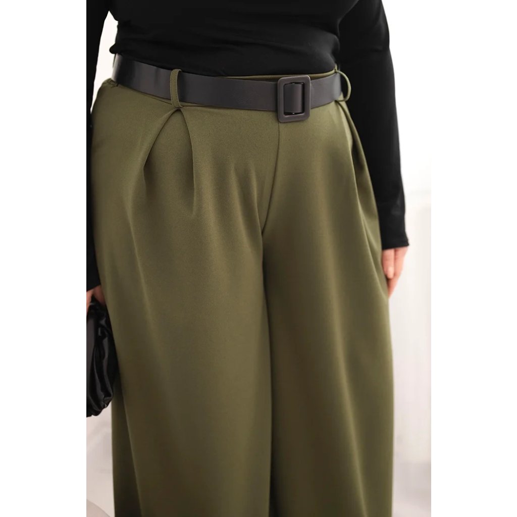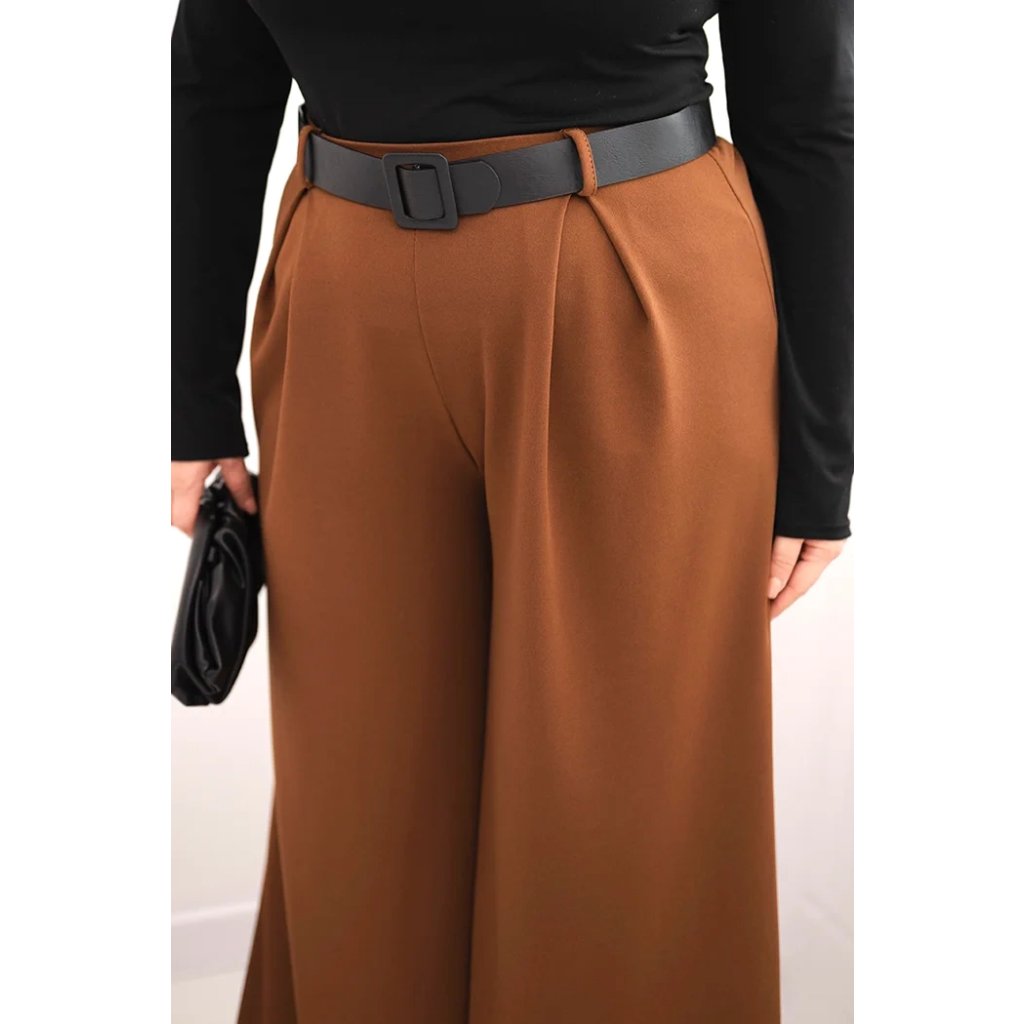 Dámské kalhoty Plus Size s širokou nohavicí a páskem