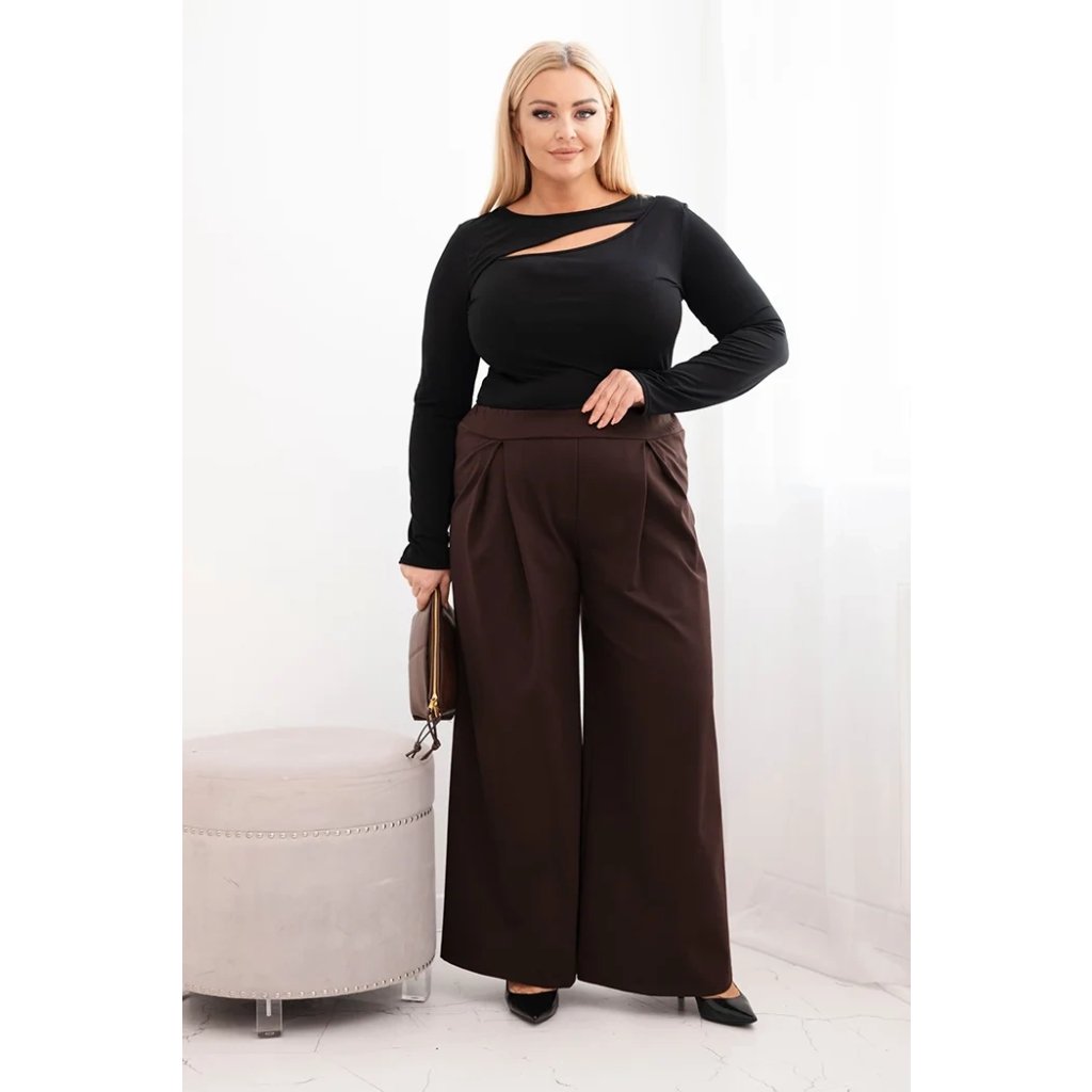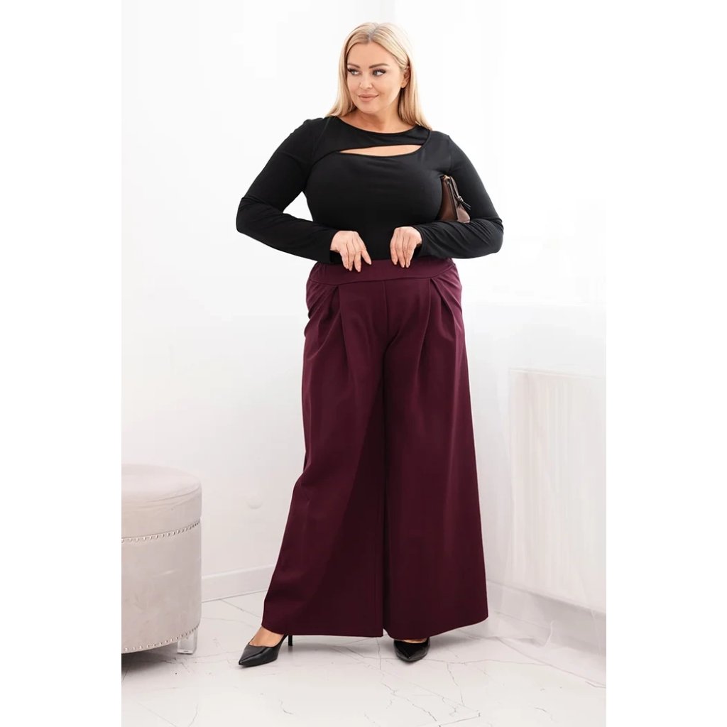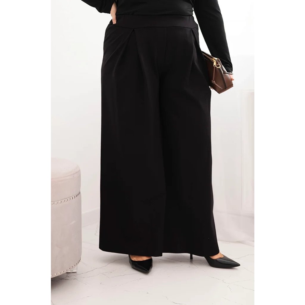 Dámské kalhoty Plus Size s širokými nohavicemi a plisováním