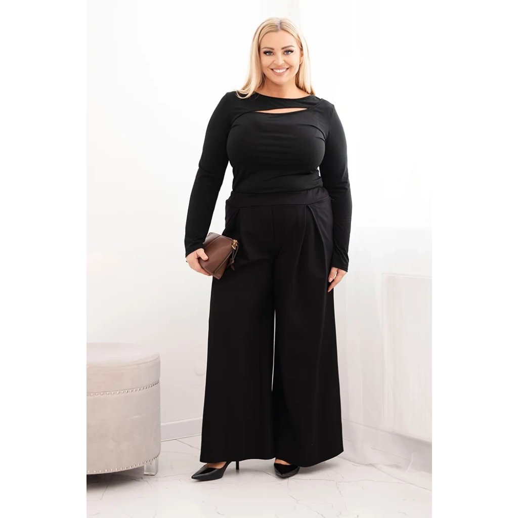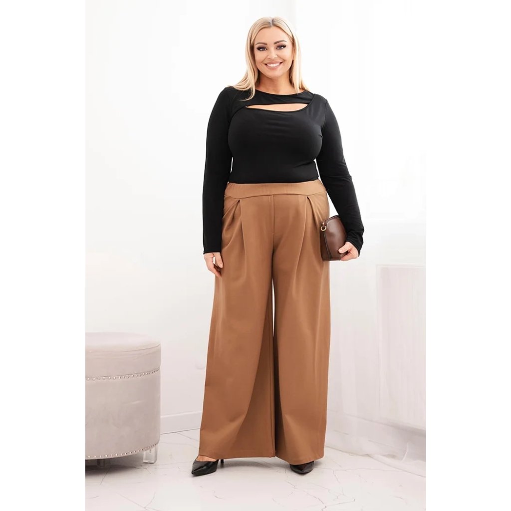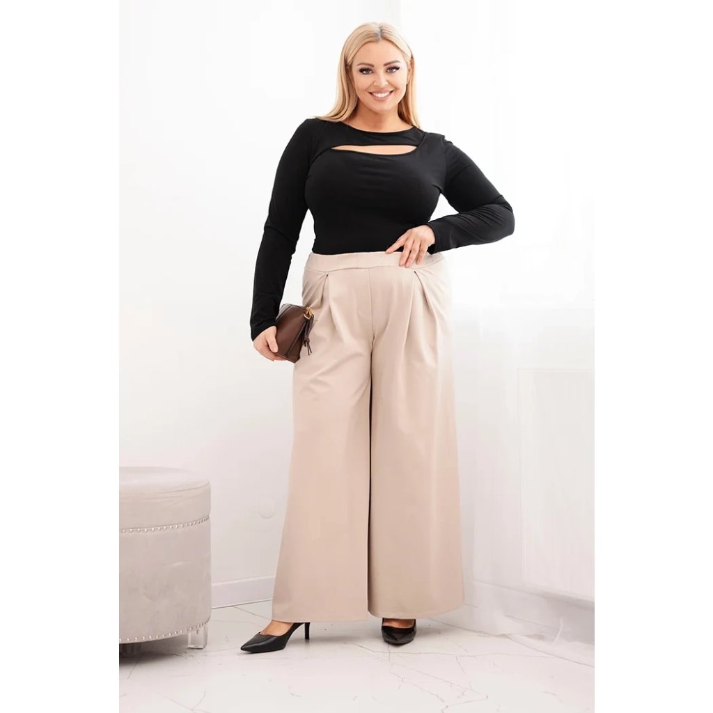Dámské kalhoty Plus Size s širokými nohavicemi a plisováním