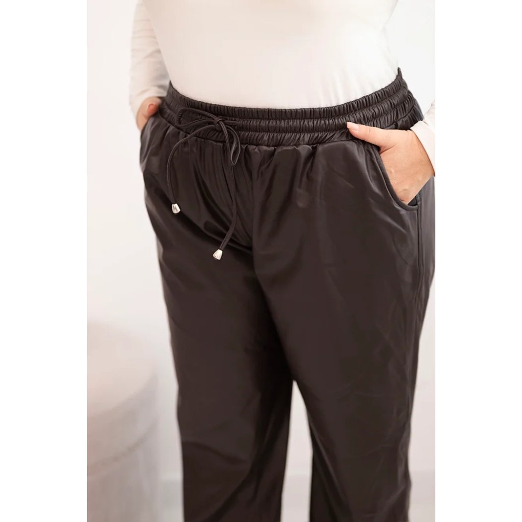 Dámské kalhoty Plus Size zateplené z ekokůže s vysokým pasem