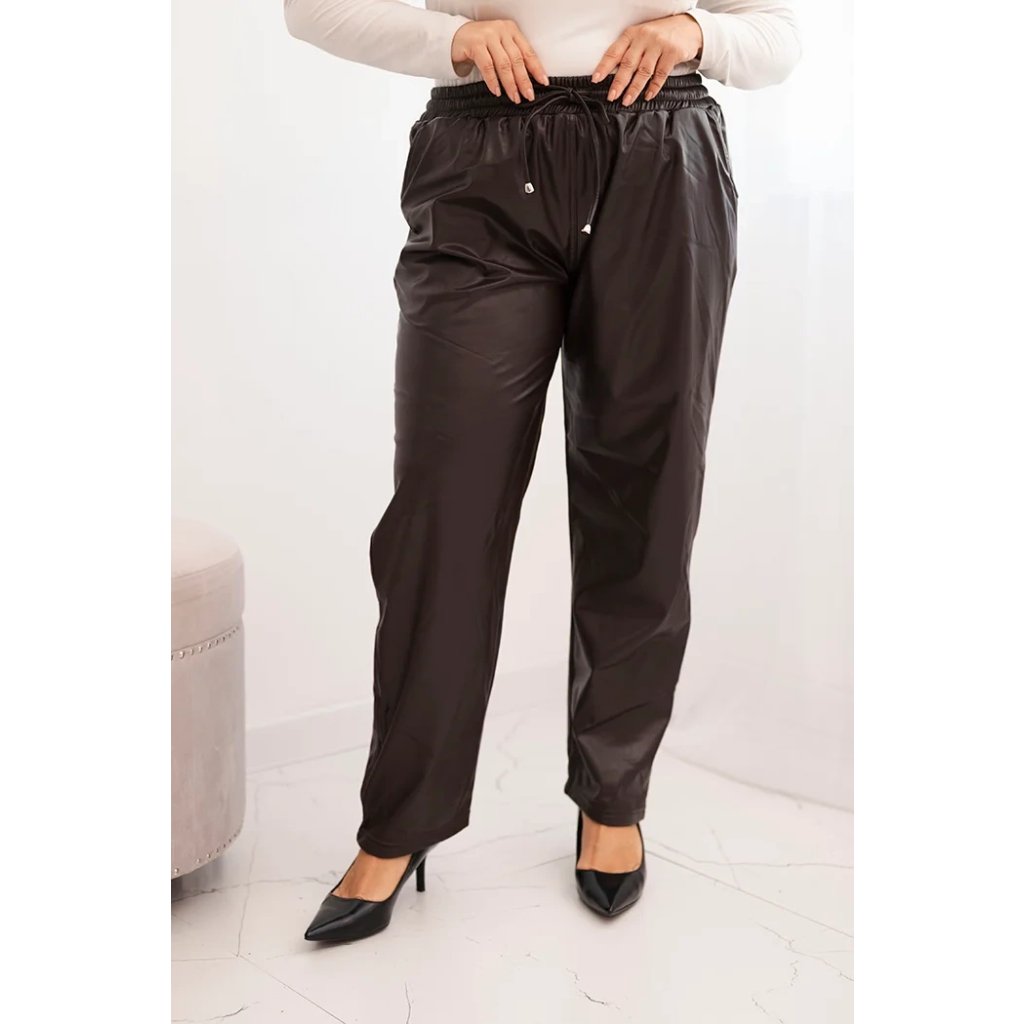 Dámské kalhoty Plus Size z ekokůže s vysokým pasem a gumou v pase černéVýrobce