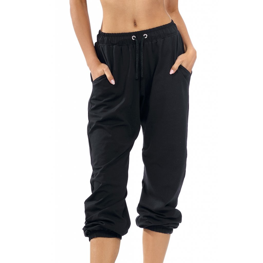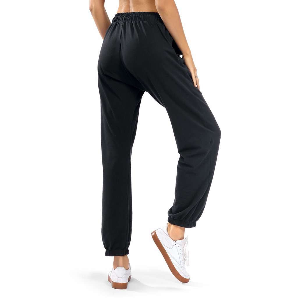 Dámské tepláky v černé barvě. Tento model je nejen velmi pohodlný, ale také dokonale sedí na ženské postavě. Univerzální střih se bude dobře hodit jak při každodenním, tak i sportovním stylu.- volný střih