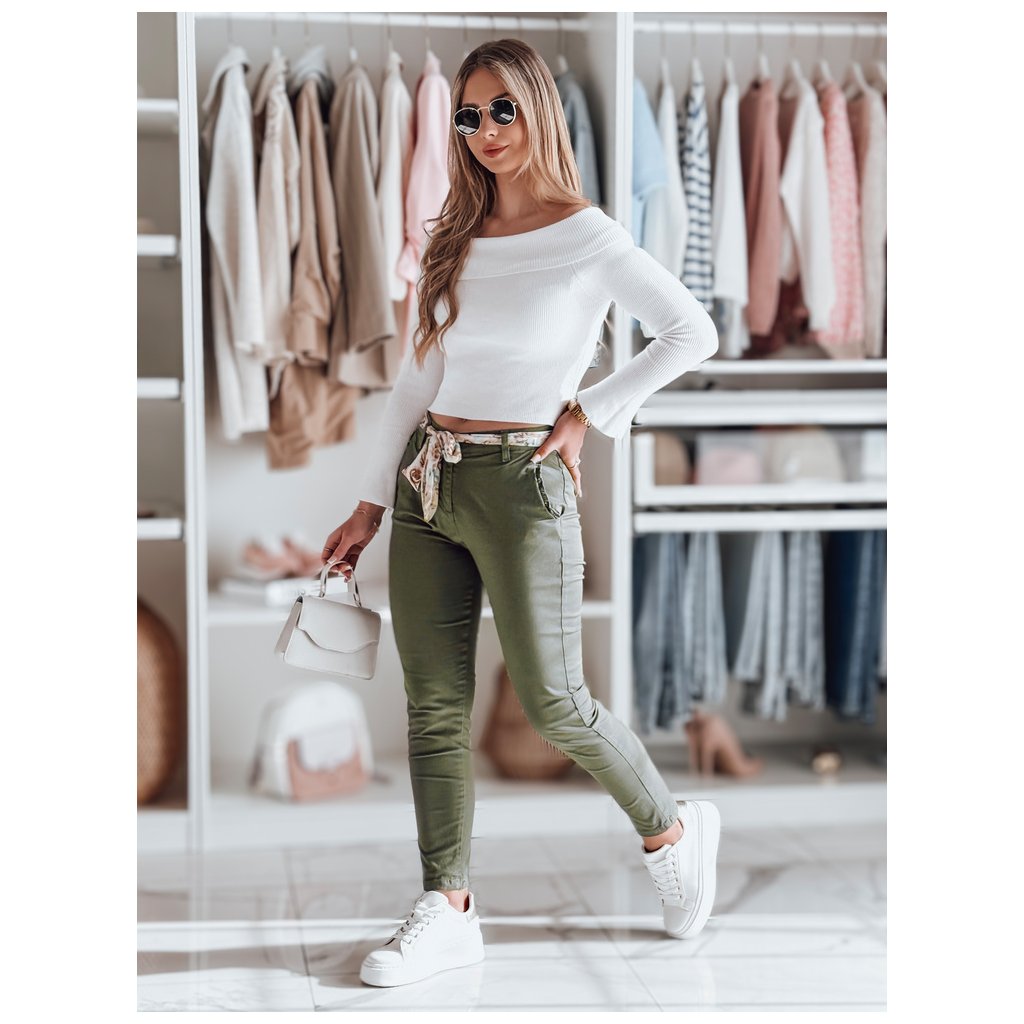 Dámské látkové chino kalhoty s páskem ROSSALI