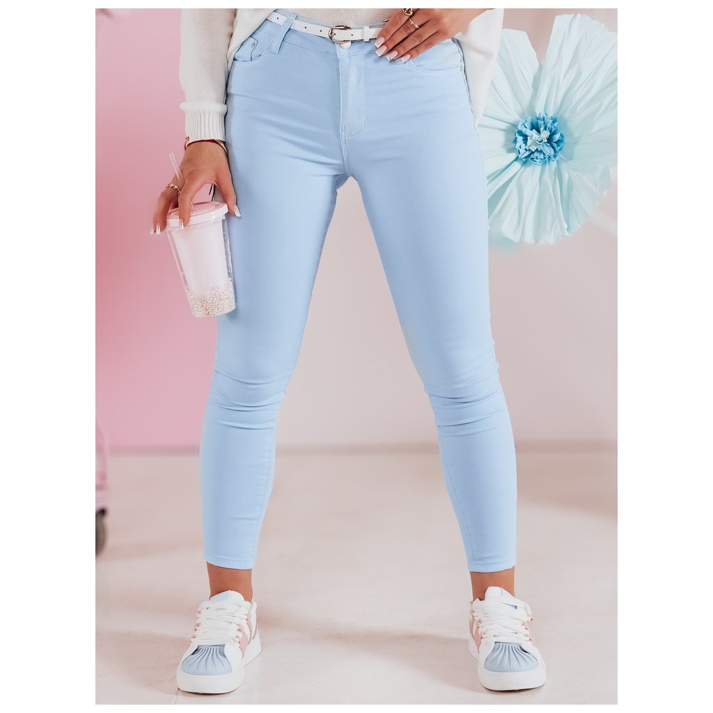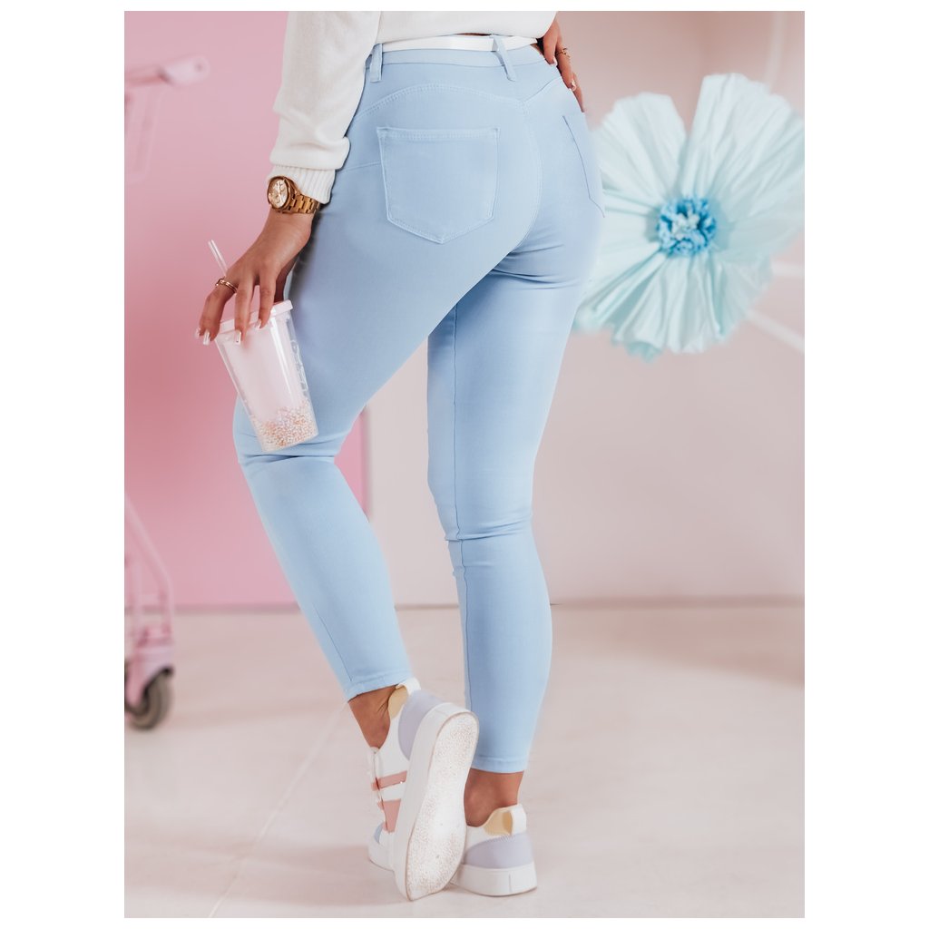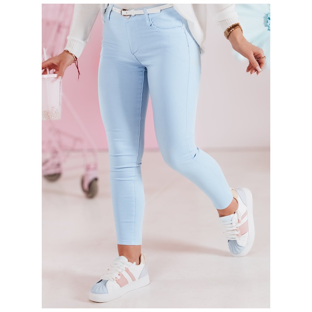 Přiléhavé dámské úzké kalhoty, ideální pro každodenní styling, opticky zeštíhlující postavu. Vysoký pas zdůrazňuje siluetu, zatímco pružná látka zajišťuje pohodlí. Dekorativní kapsy dodávají střih na půvab a součástí je pásek, který umožňuje individuální střih. Délka nohavic ke kotníkům je činí perfektními ke sportovní i elegantní obuvi.