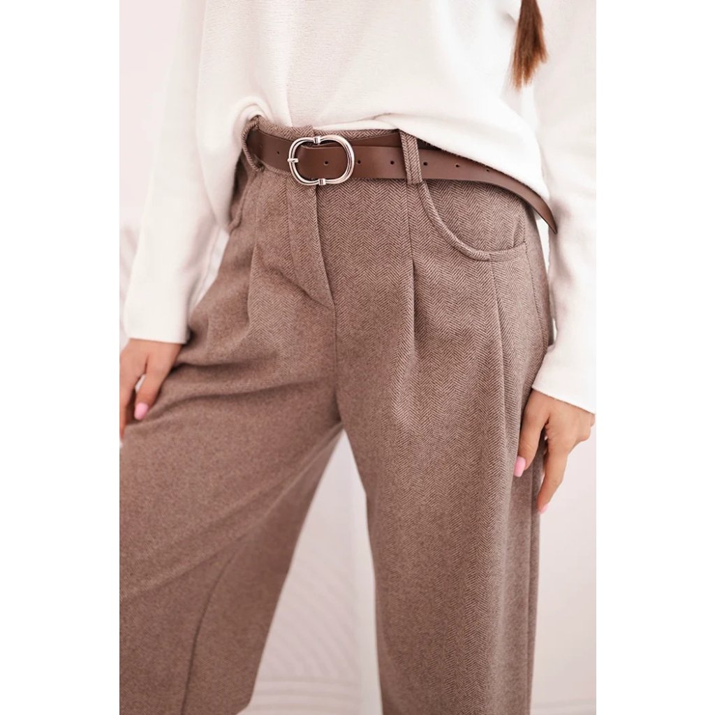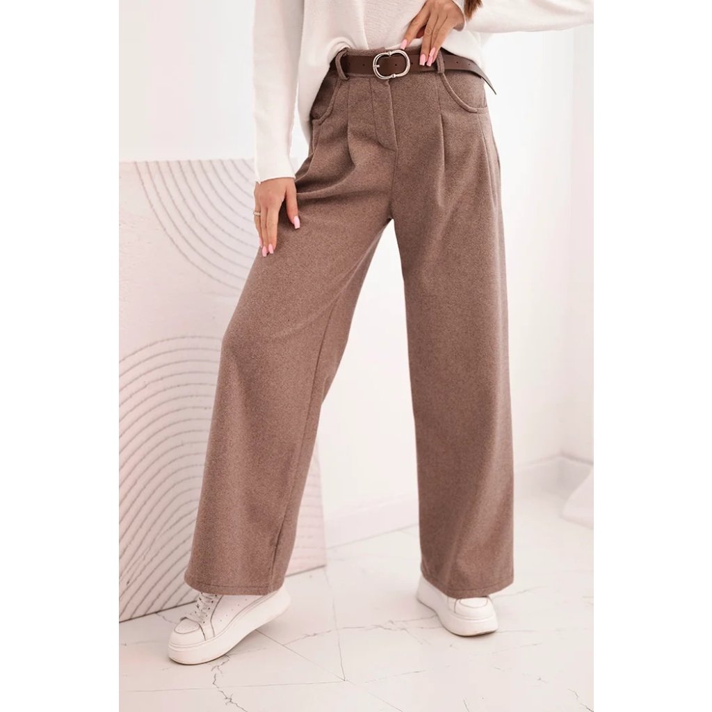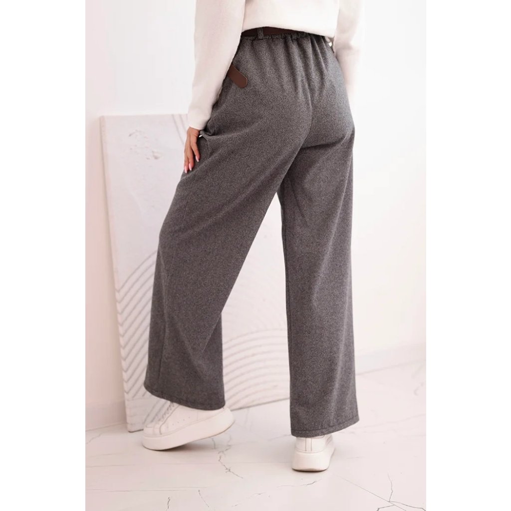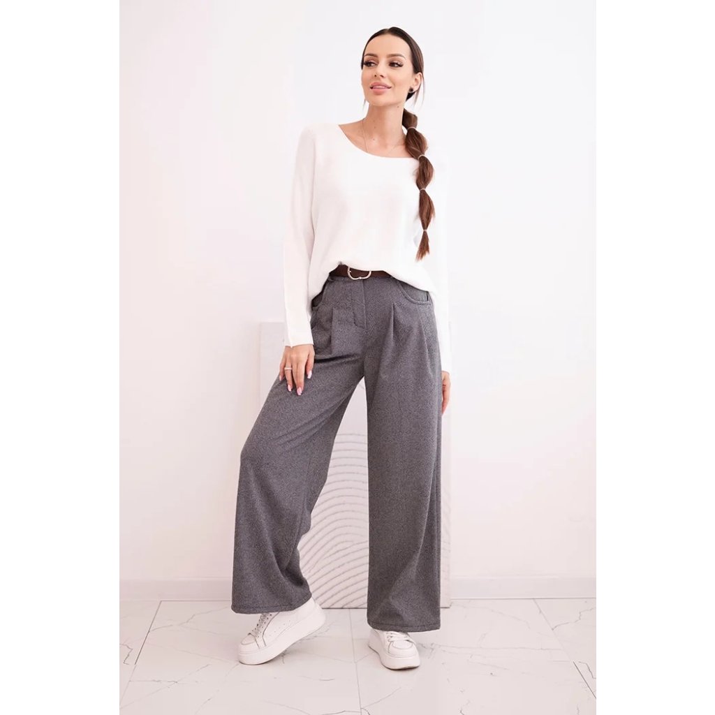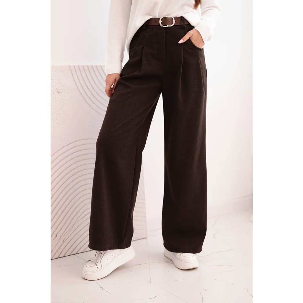 Elegantní dámské kalhoty s širokou nohavicí a páskem jsou nezbytností v podzimně-zimním šatníku každé ženy. Vyrobeny z vysoce kvalitního materiálu, zajišťují pohodlí při nošení a stylový vzhled. Volný střih a vysoký pas opticky zeštíhlují postavu, a přidaný pásek krásně zvýrazňuje pas.