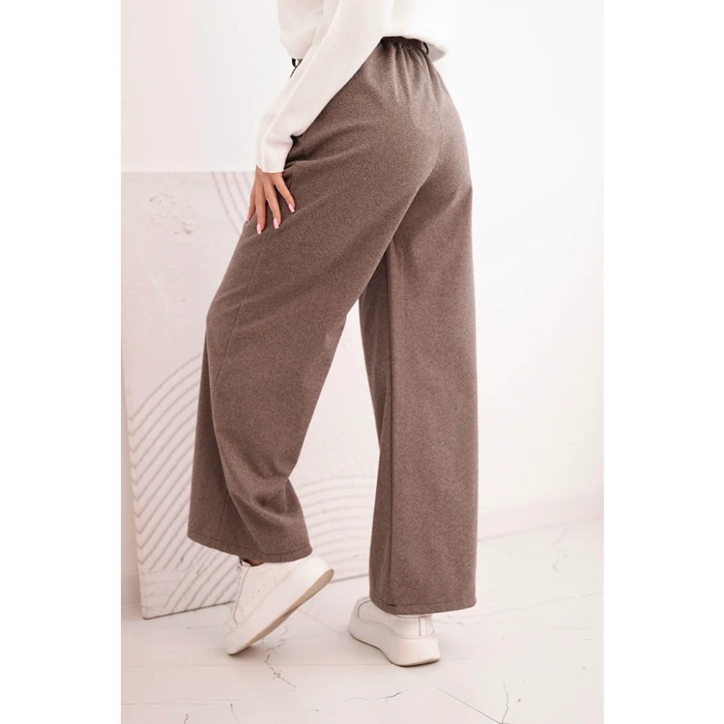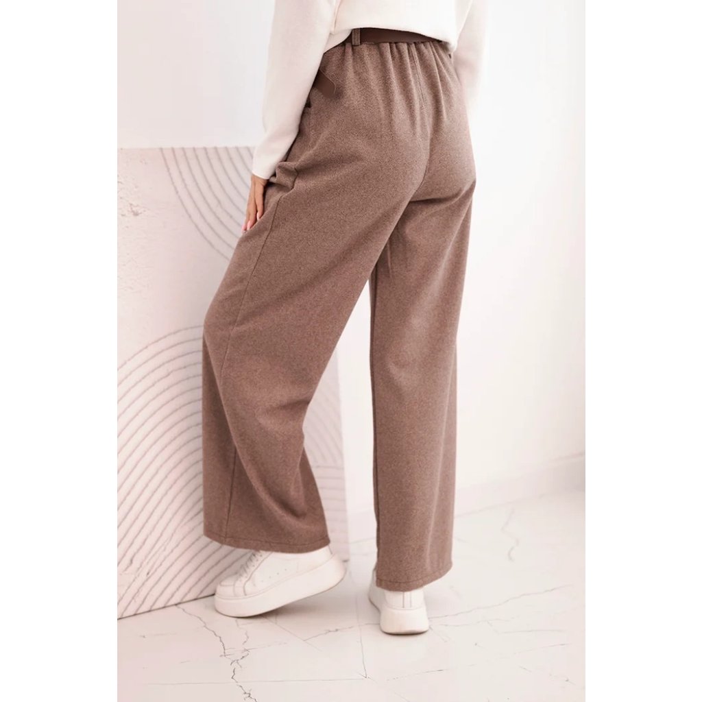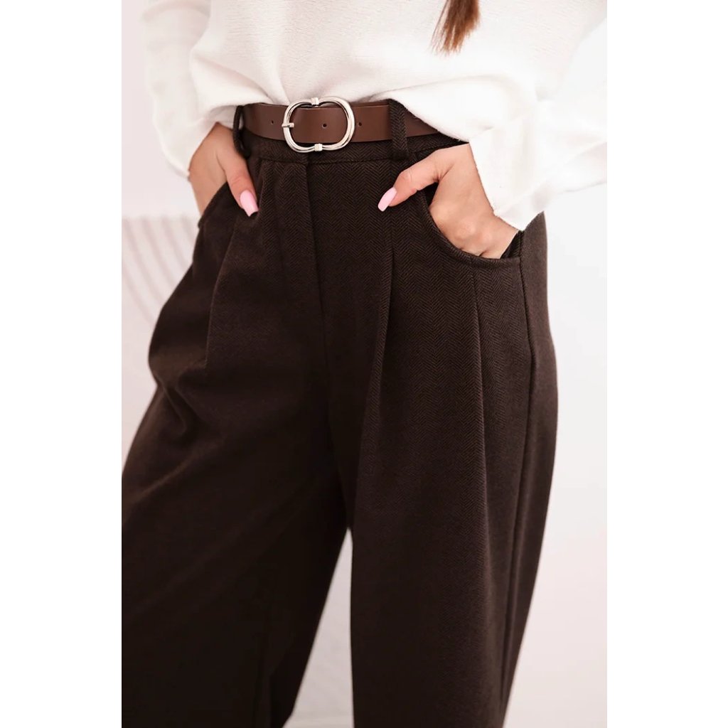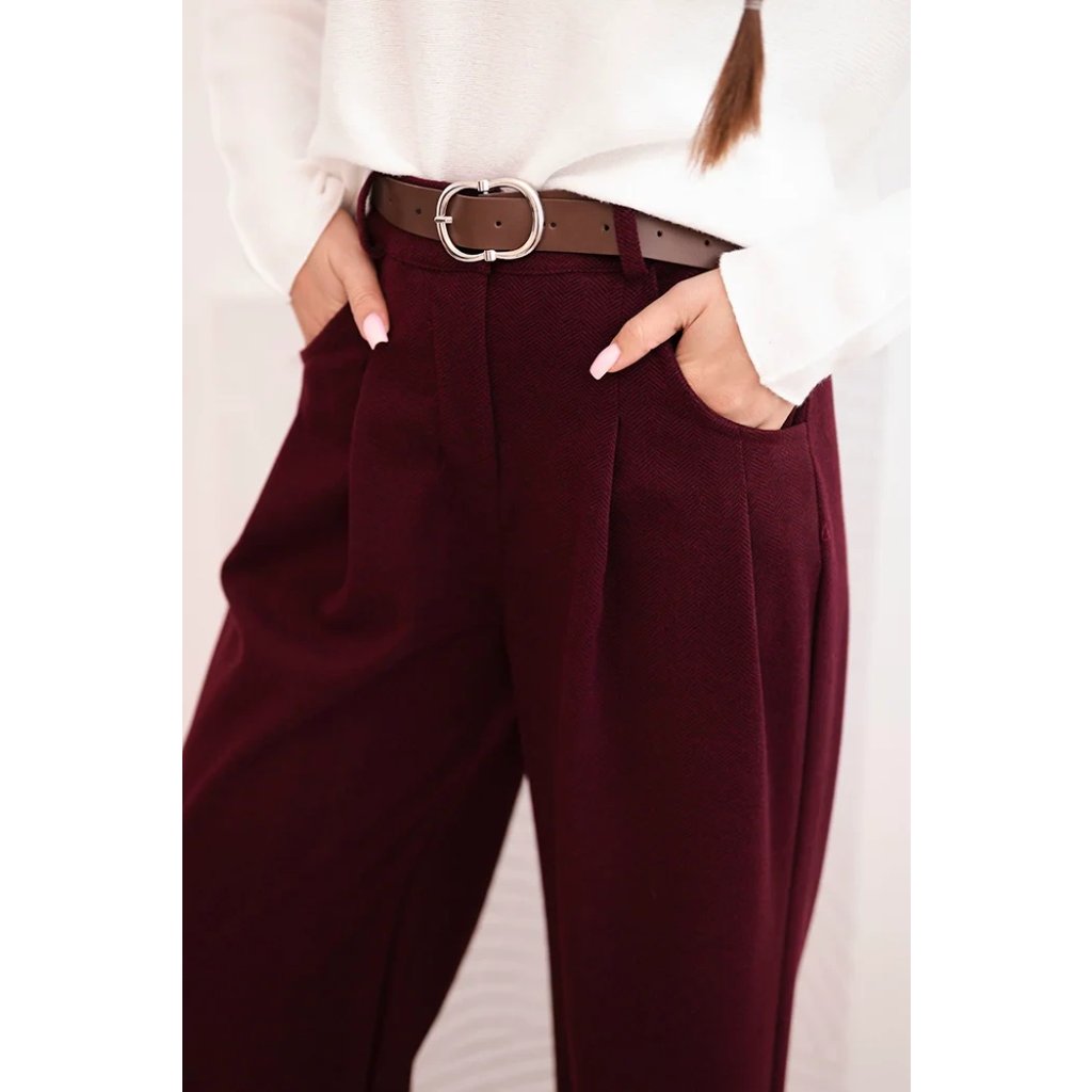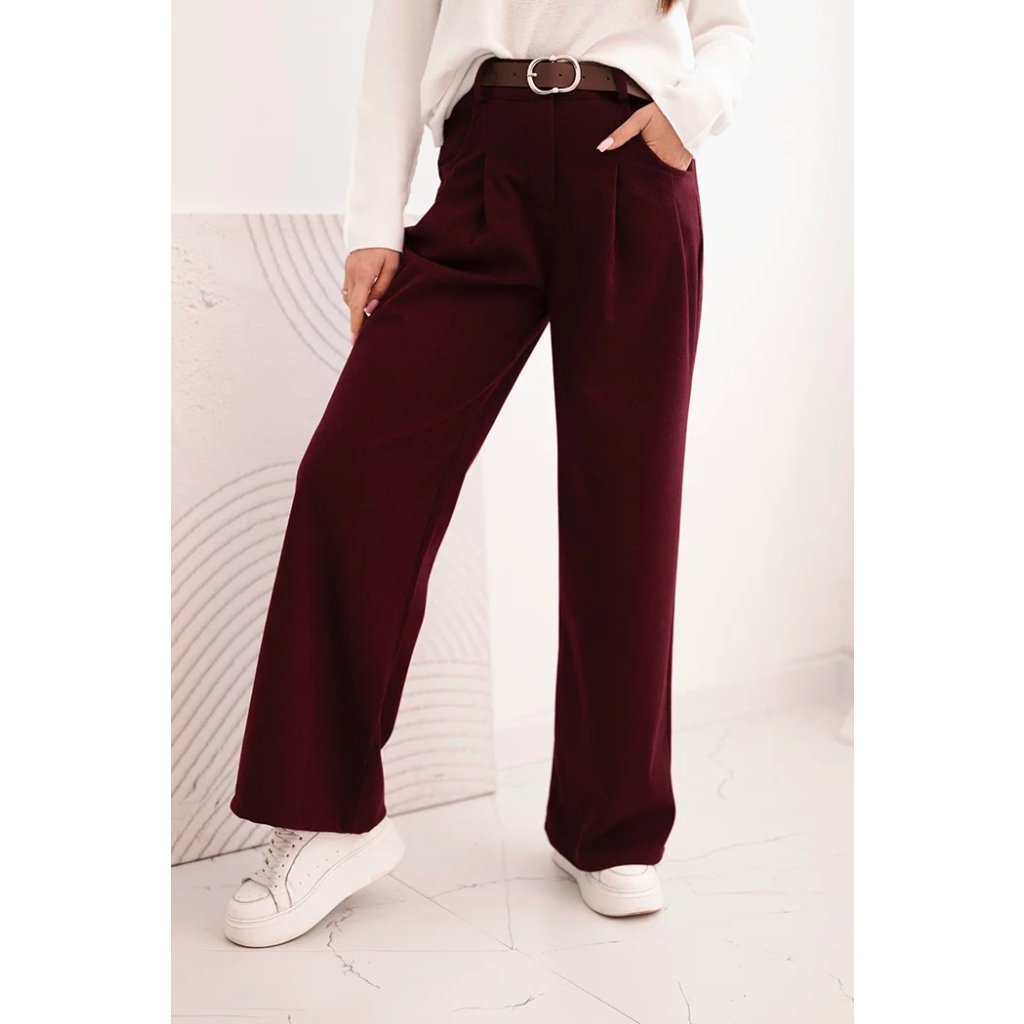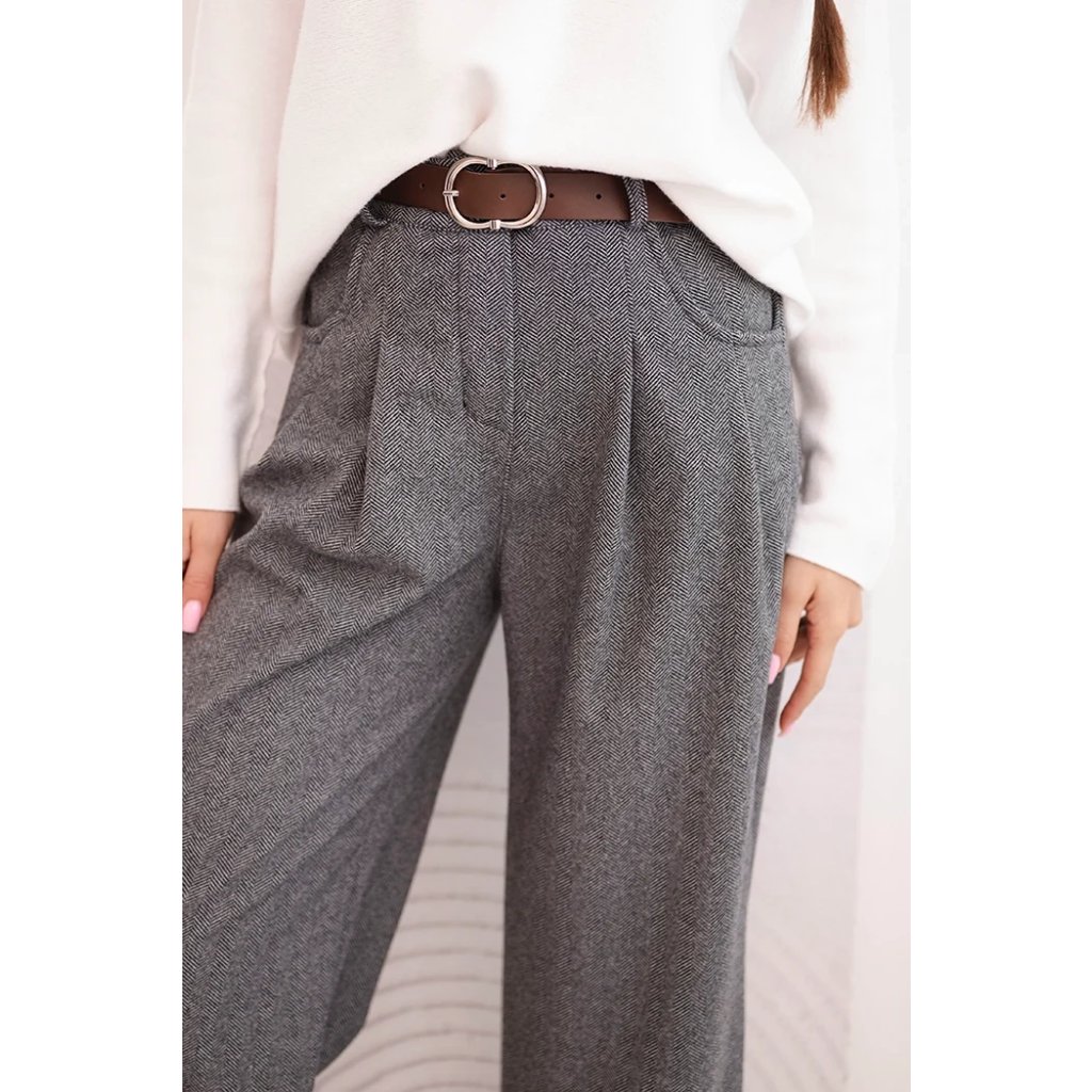 Elegantní dámské kalhoty s širokou nohavicí a páskem jsou nezbytností v podzimně-zimním šatníku každé ženy. Vyrobeny z vysoce kvalitního materiálu, zajišťují pohodlí při nošení a stylový vzhled. Volný střih a vysoký pas opticky zeštíhlují postavu, a přidaný pásek krásně zvýrazňuje pas.