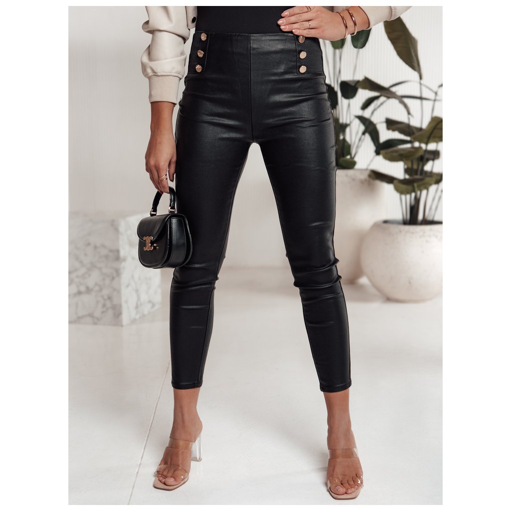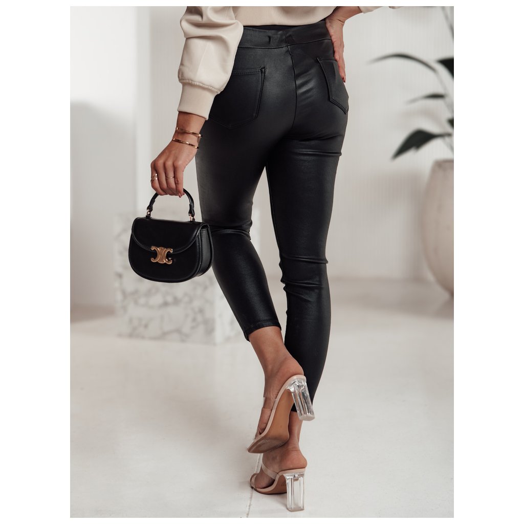 Dámské kožené kalhoty s vysokým pasem SKINLOVE černé Dstreet UY2198
