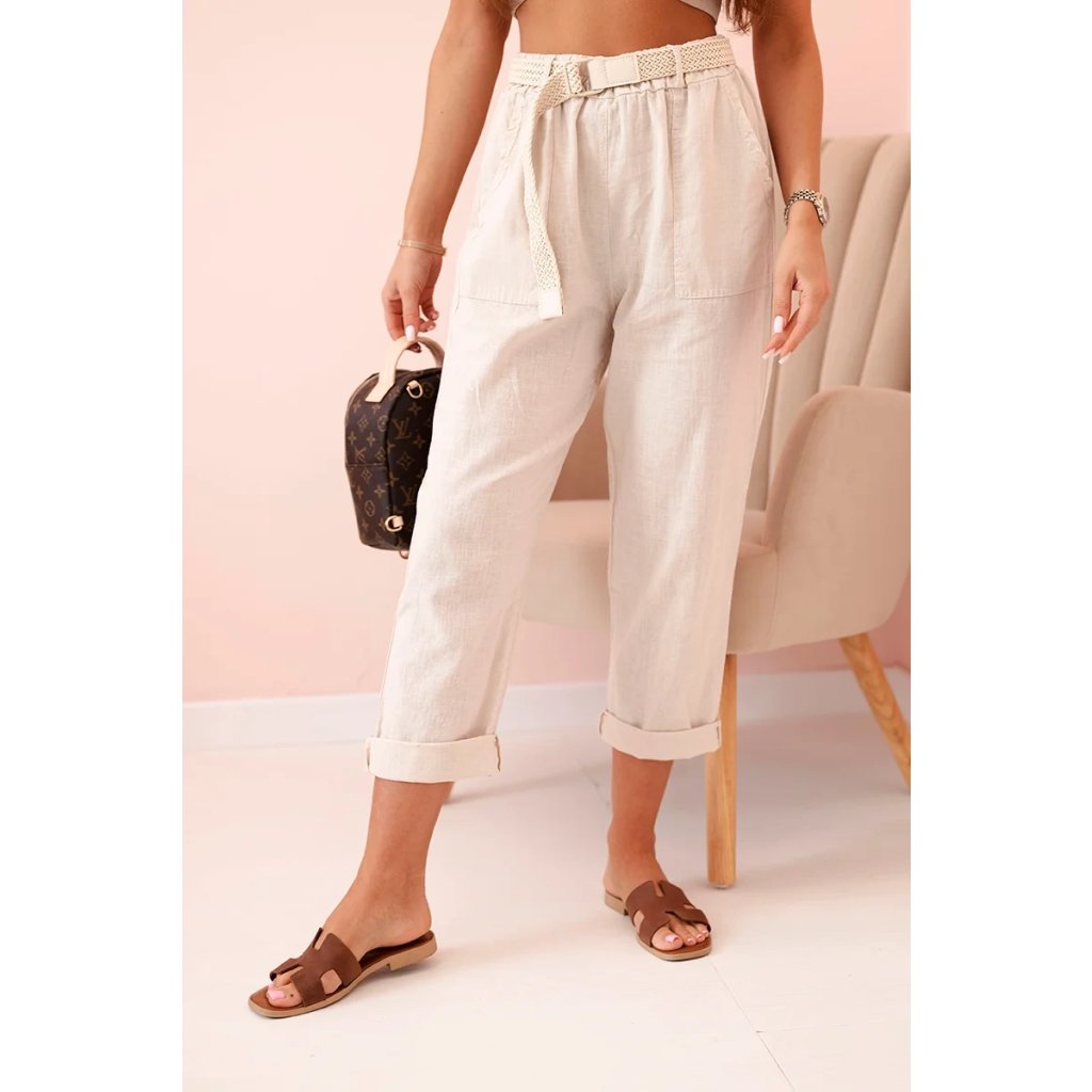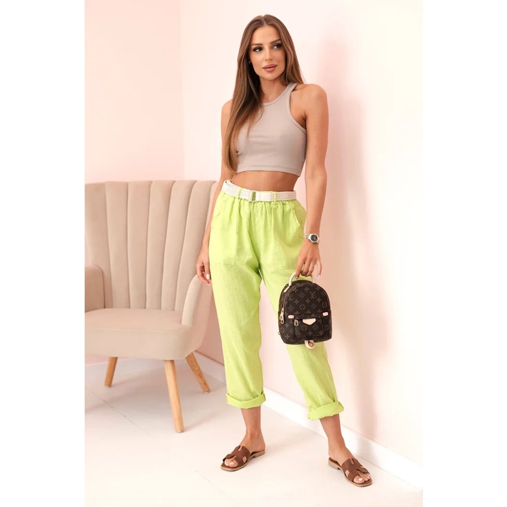 Dámské lněné kalhoty ART52888 s páskem