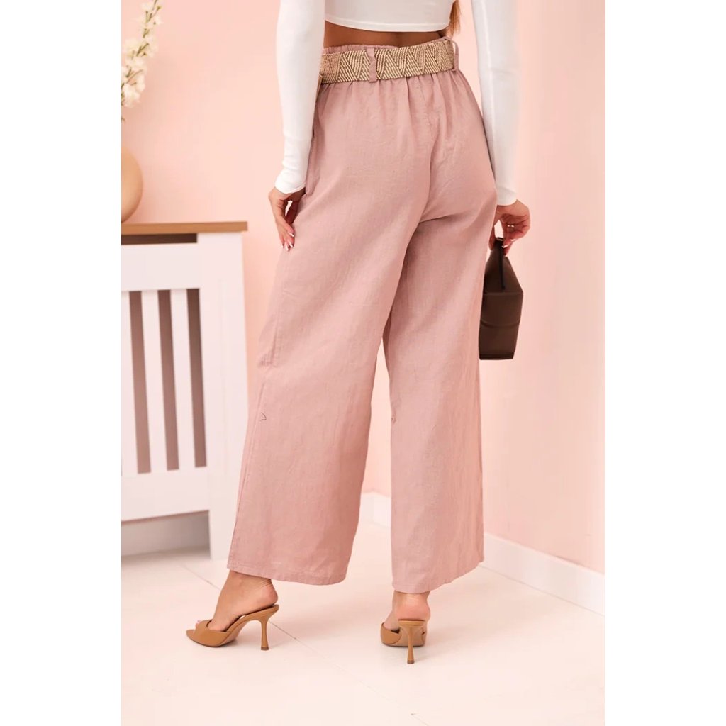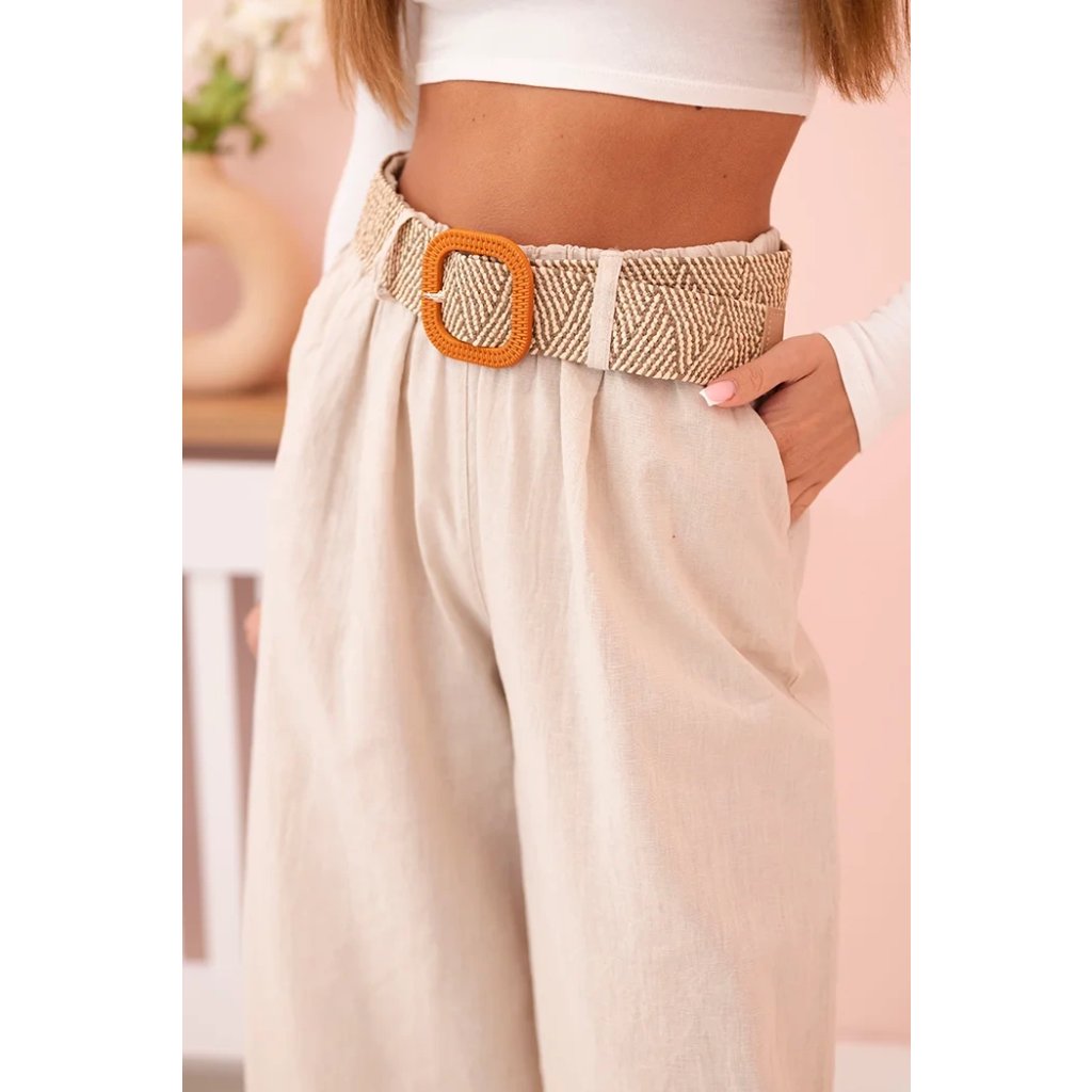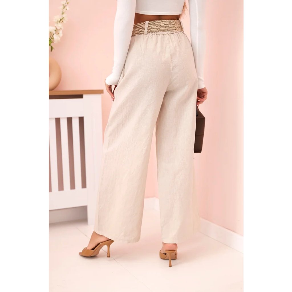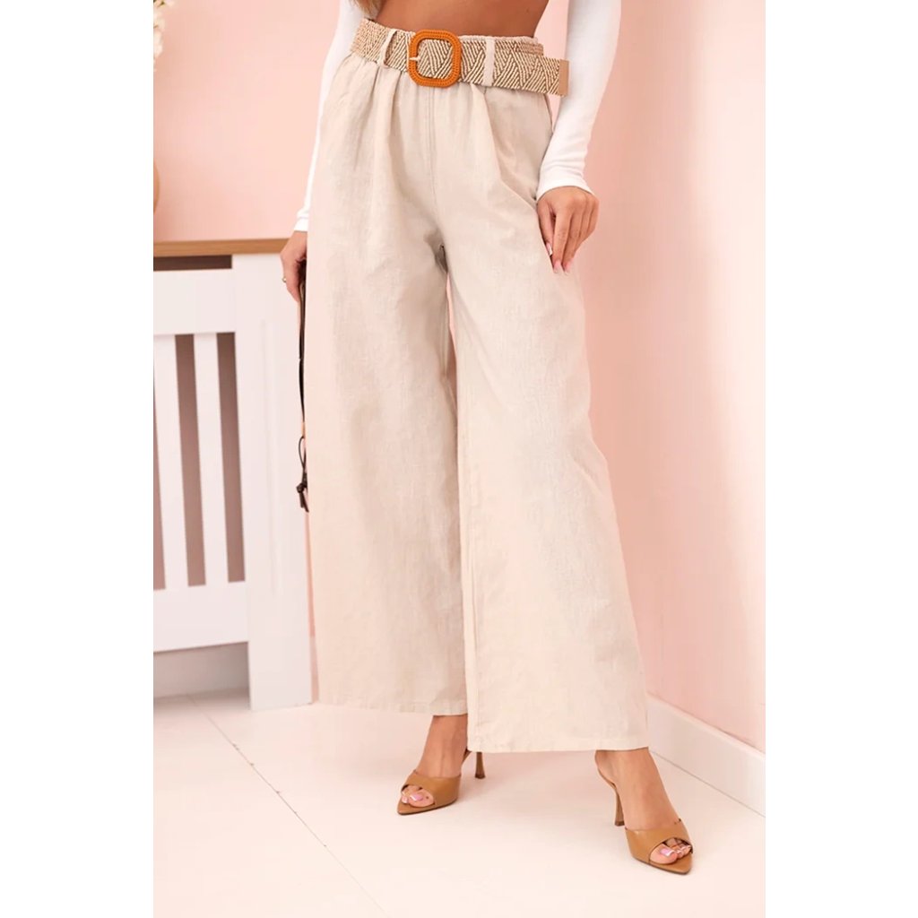 Dámské lněné kalhoty Tridy se širokými nohavicemi a páskem béžový