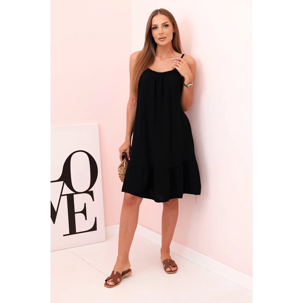 Lehké a vzdušné dámské mušelínové šaty na ramínka s volánem jsou ideální volbou na teplé letní dny. Vyrobené ze 100% přírodní bavlny, potěší svou měkkostí a jemností na dotek, poskytující maximální pohodlí při nošení. Volný střih s rozšířeným spodním lemem zakončeným volánem krásně sedí na postavě, maskuje drobné nedokonalosti a poskytuje úplnou volnost pohybu. Tento model se skvěle hodí jak na procházku po pláži, tak i na letní setkání s přáteli. Guma u výstřihu jemně zvýrazňuje ramena a tenká ramínka dodávají celému outfitu lehkost a ženský šarm. Díky své univerzálnosti ji snadno sladíte se sandály, kloboukem nebo boho kabelkou.
