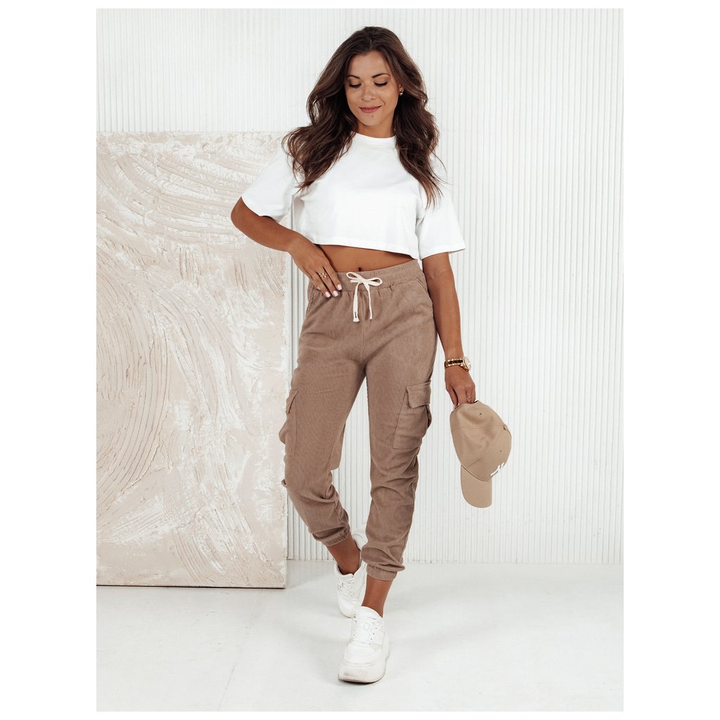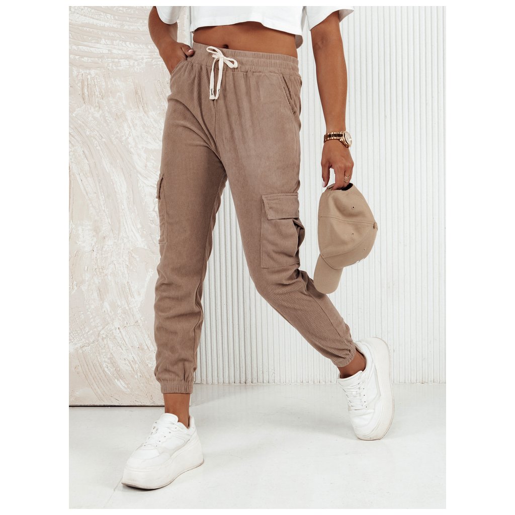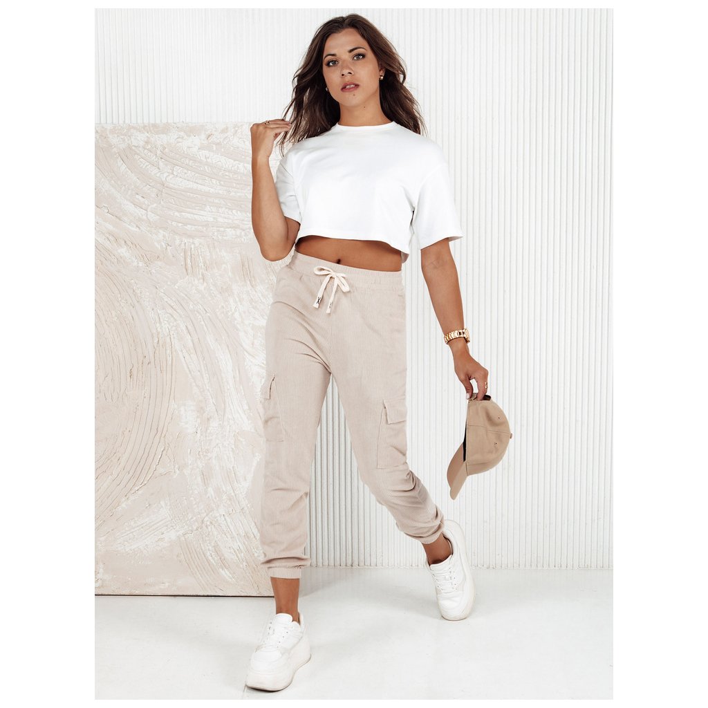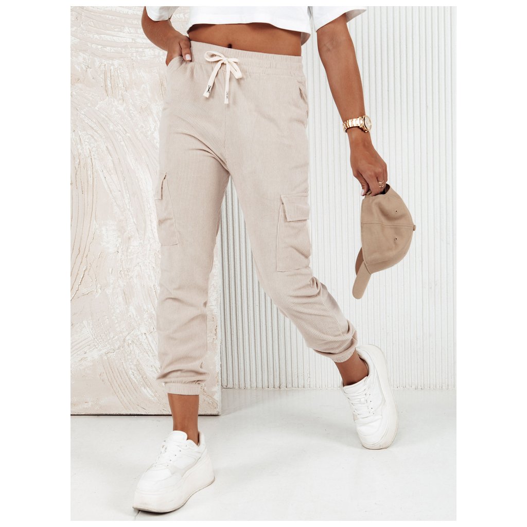 Dámské pruhované kalhoty CHICCORD beige Dstreet UY2174