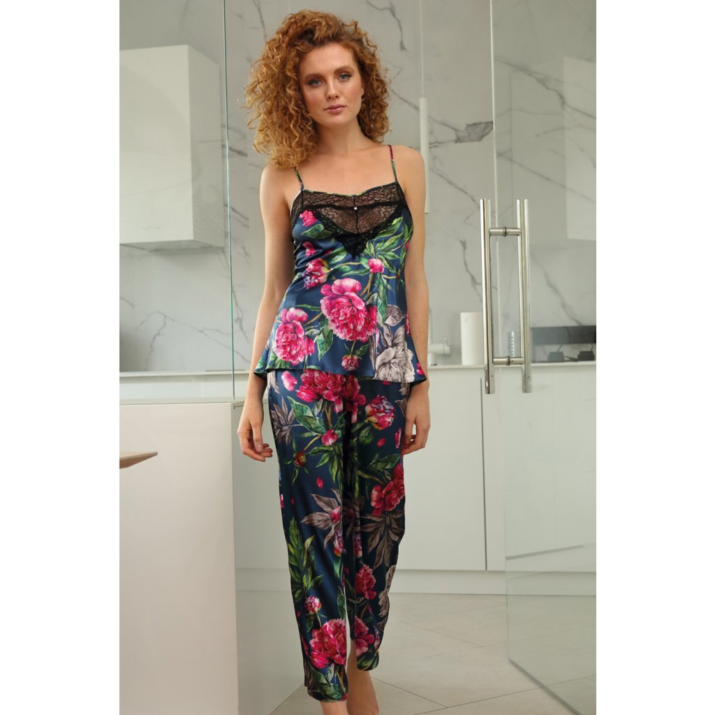 Dámské pyžamo z kolekce Flowers.Vyrobeno z květinového saténu