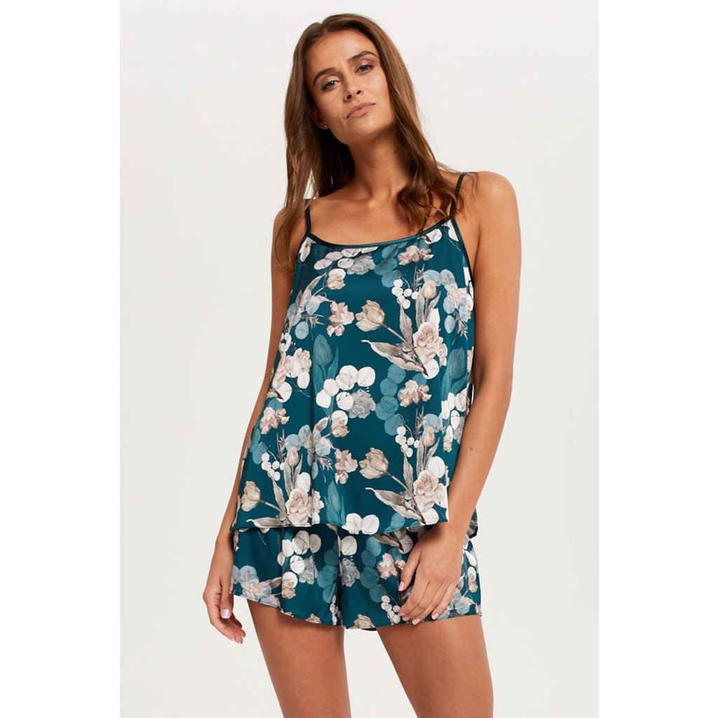 Dámský saténový pyžamový set- tmavě zelené barvy.